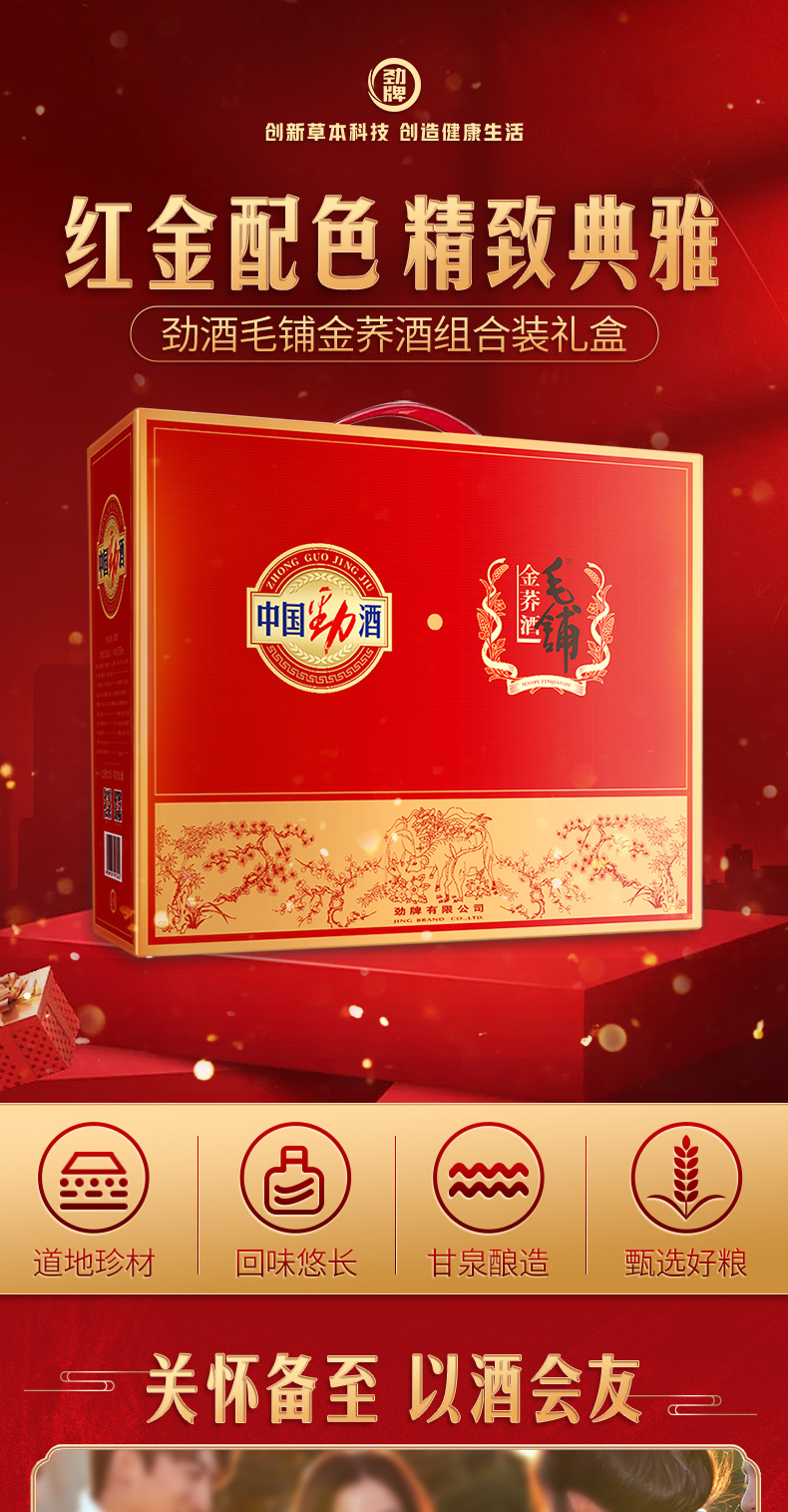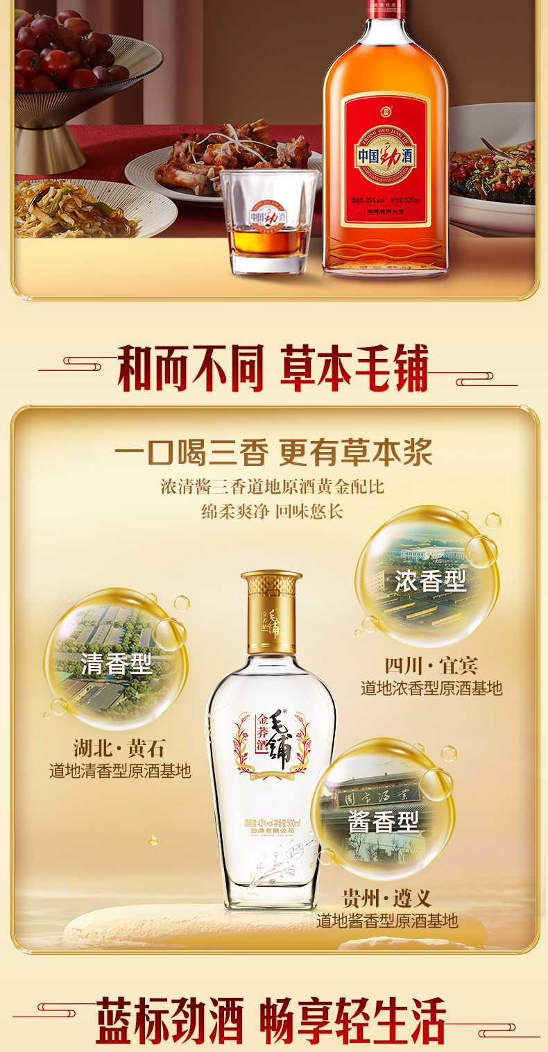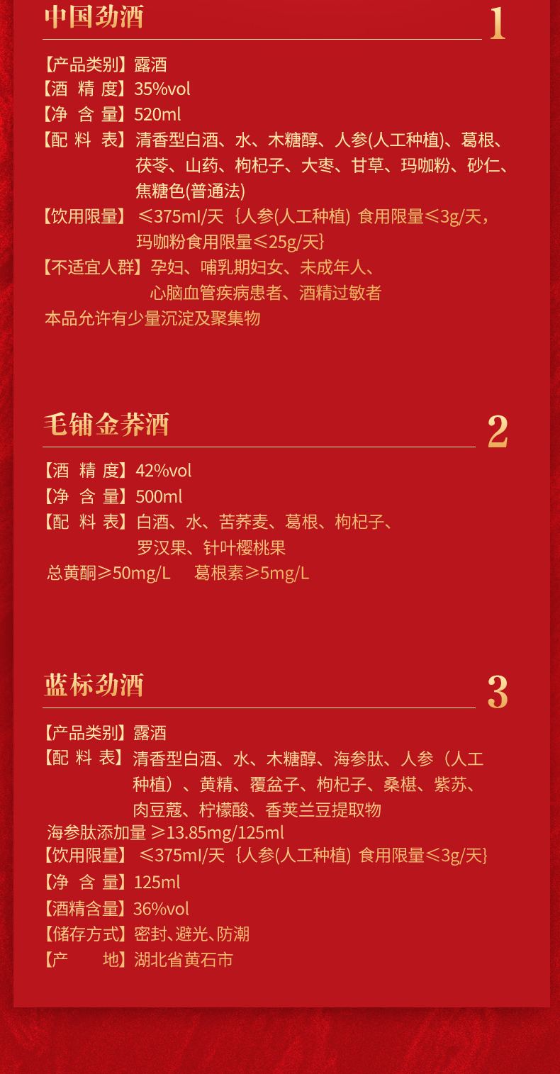 劲牌 毛铺 520ml中国劲酒+500ml毛铺金荞酒+125ml蓝标劲酒组合礼盒 自饮 送礼 送长辈