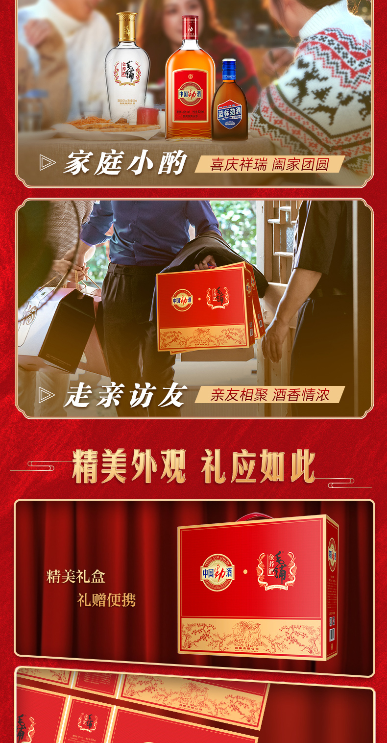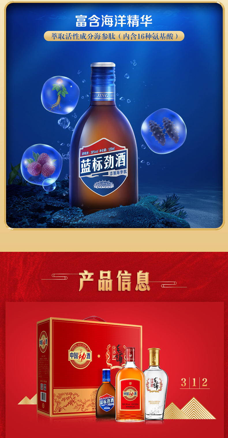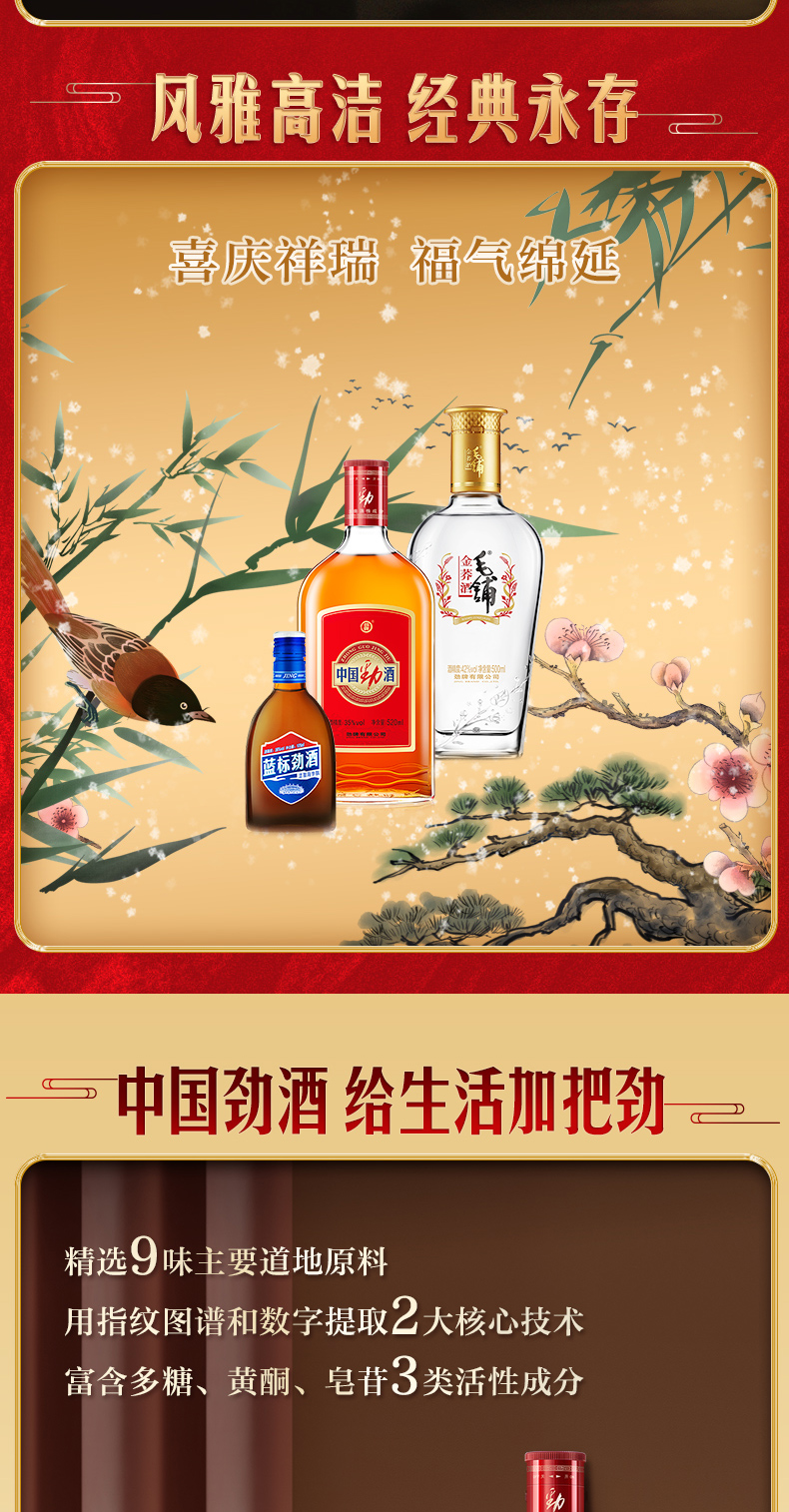 劲牌 毛铺 520ml中国劲酒+500ml毛铺金荞酒+125ml蓝标劲酒组合礼盒 自饮 送礼 送长辈