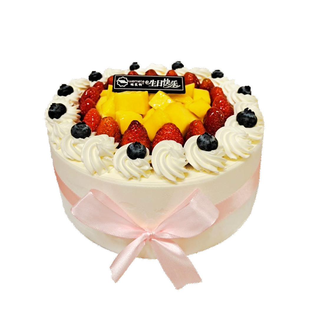味美特“花漾甜心”鲜果奶油蛋糕-利用草莓、芒果、主打,蓝莓点缀,好看又好吃
