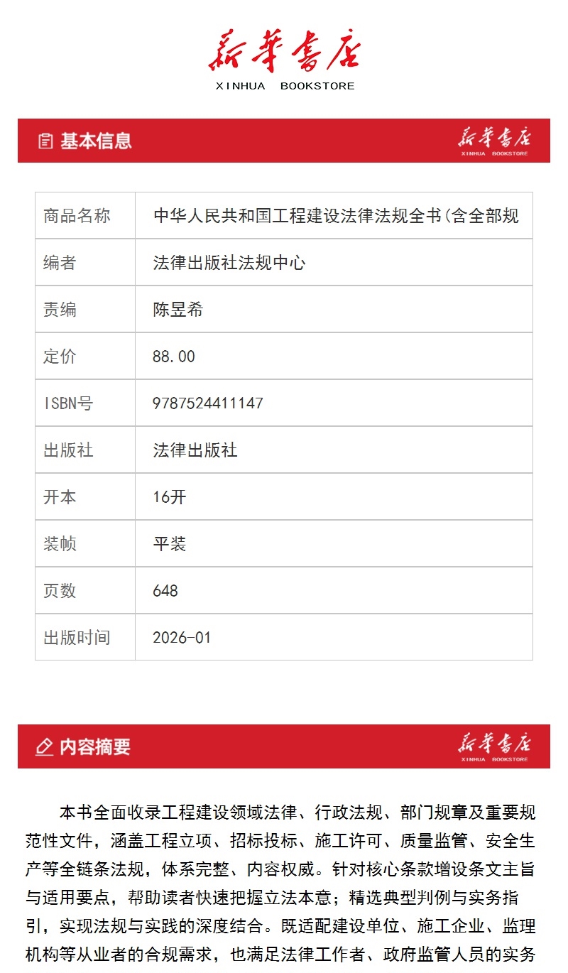 2026年版中华人民共和国工程建设法律法规全书:含全部规章