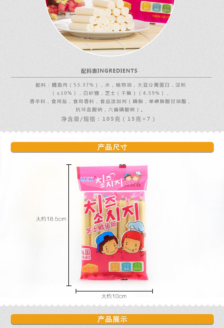 【韩国】原装进口ZEK芝士鳕鱼肠105g/袋