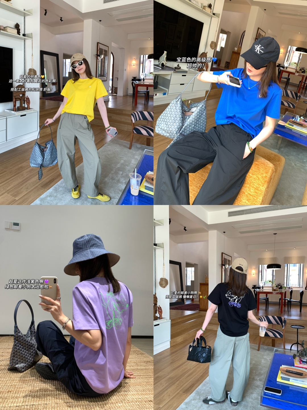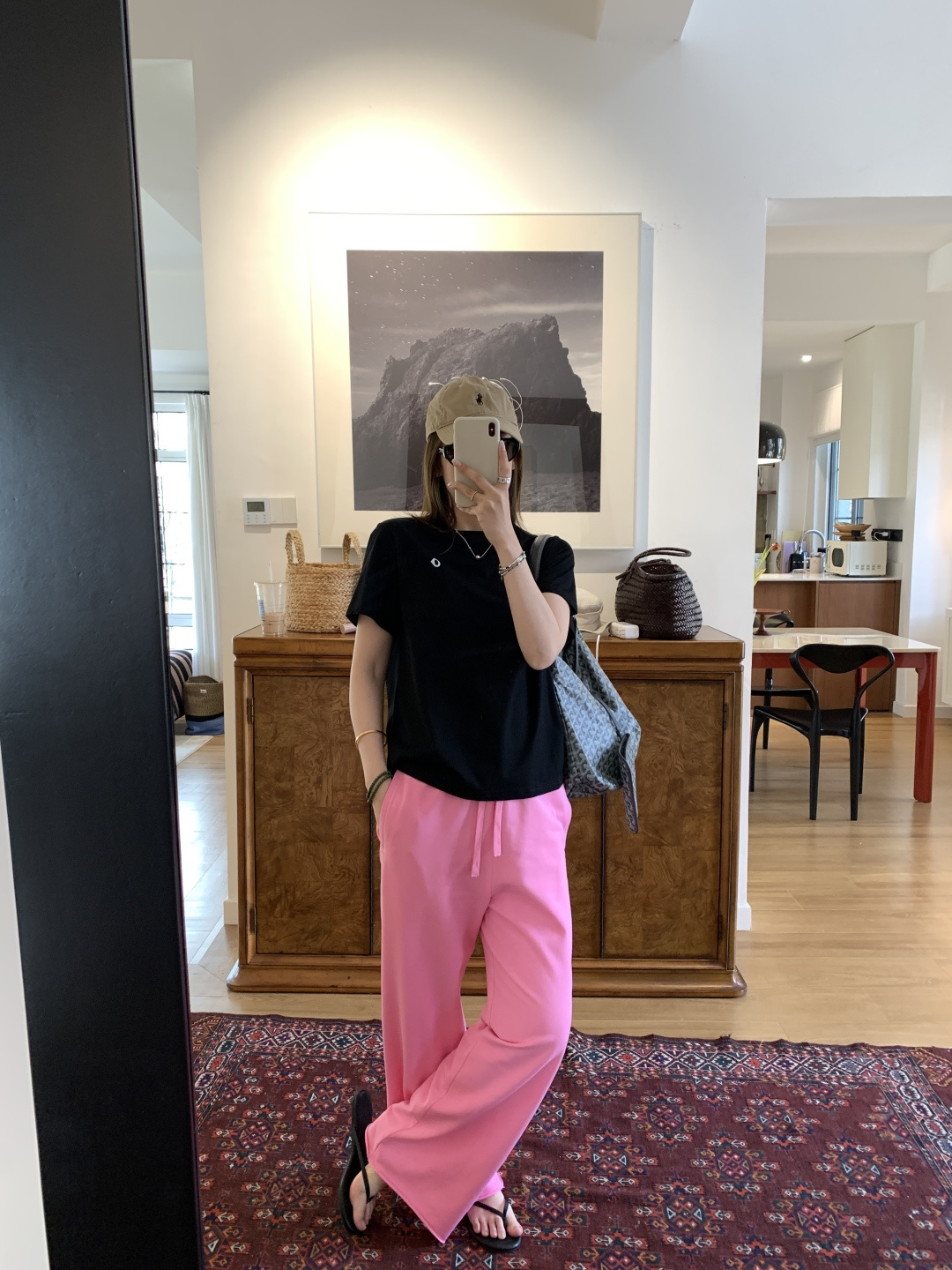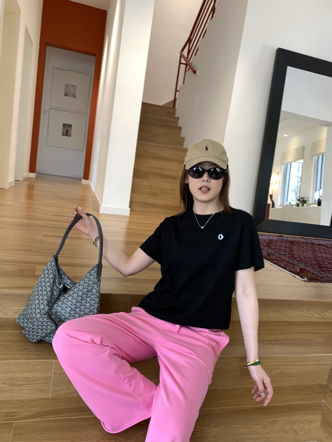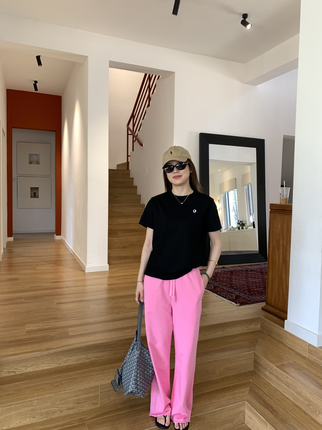 黑色就很适合搭配彩色裤装!基础的T搭配不基础的颜色 哈哈哈太实用了