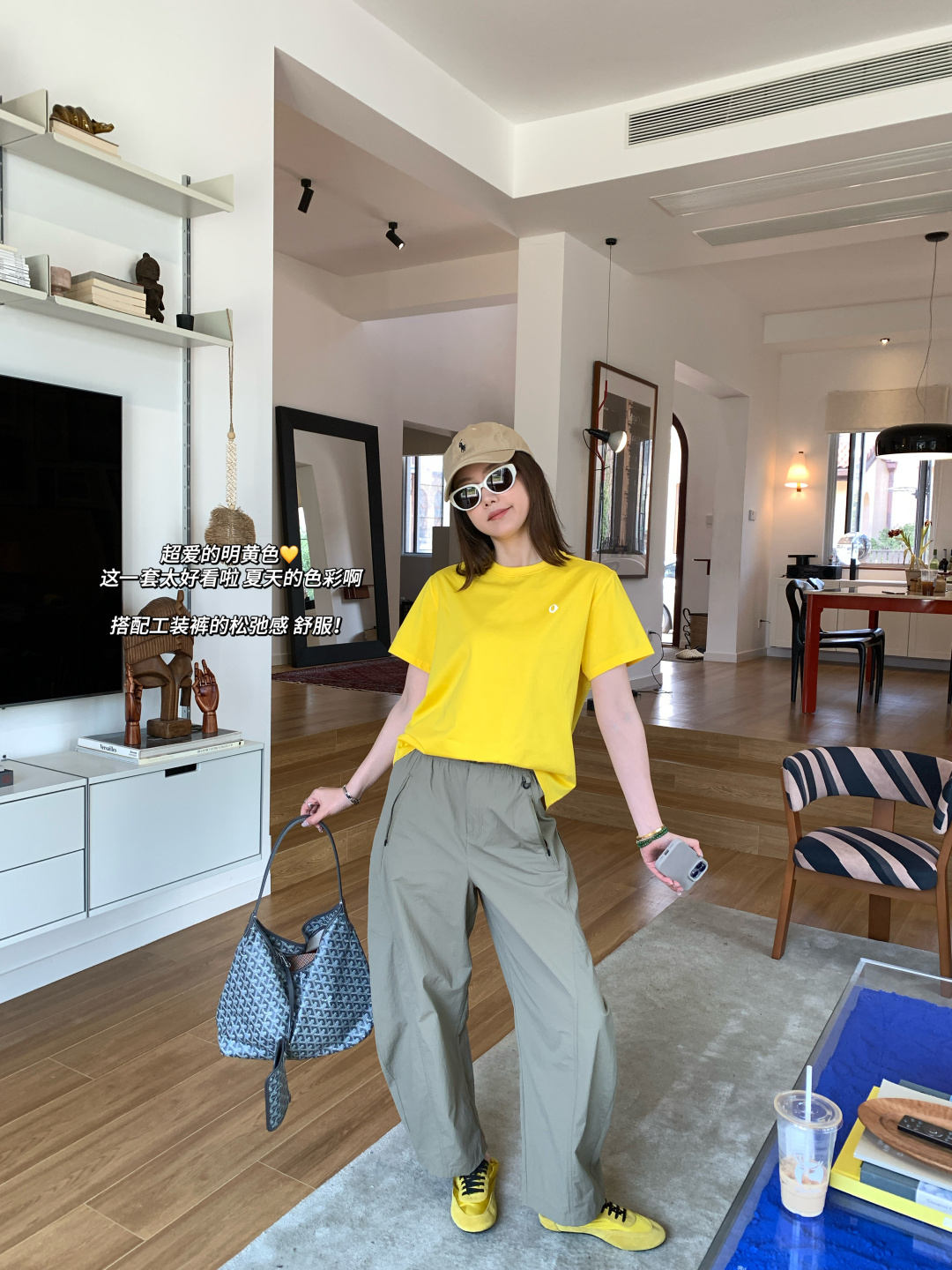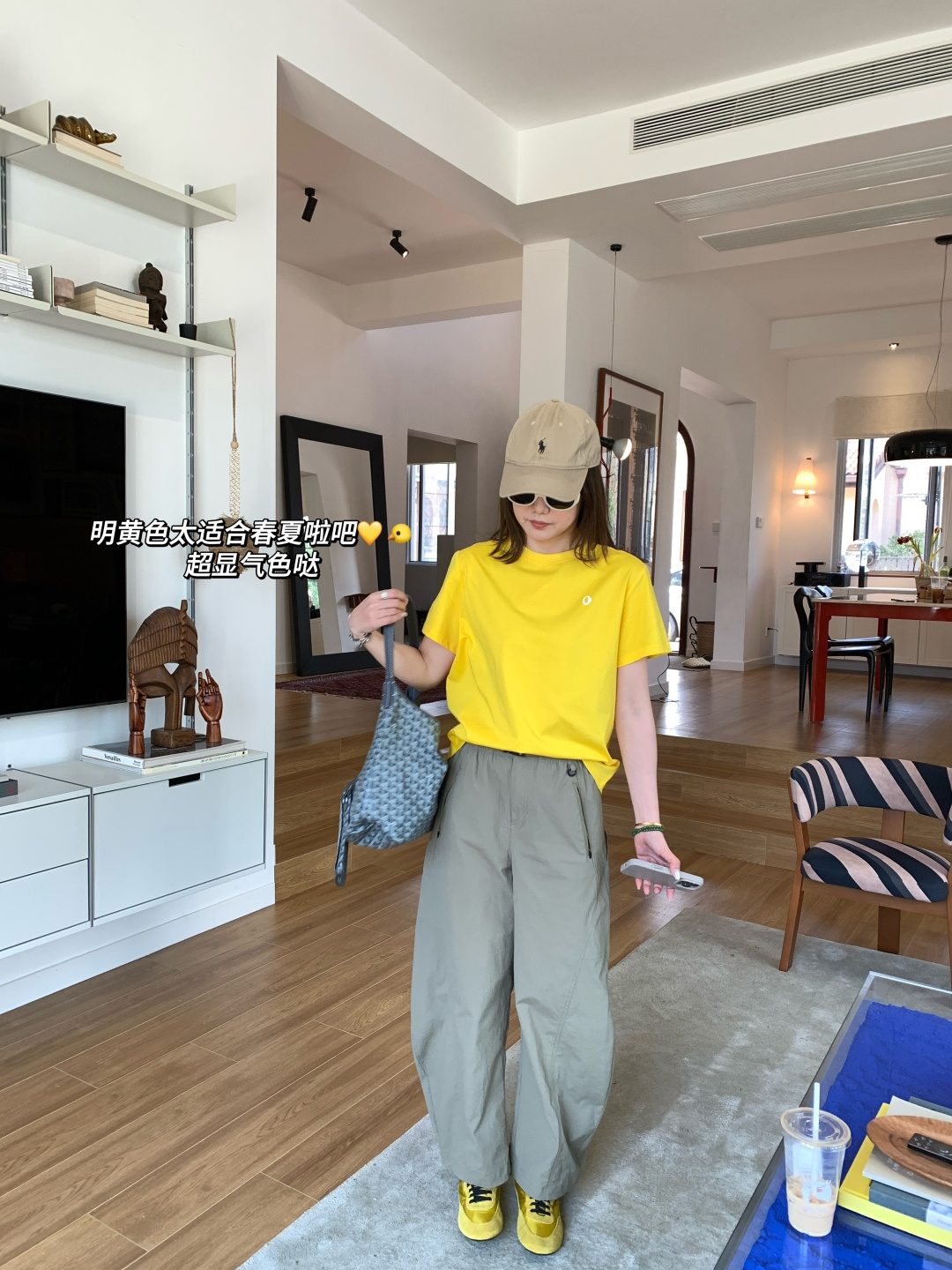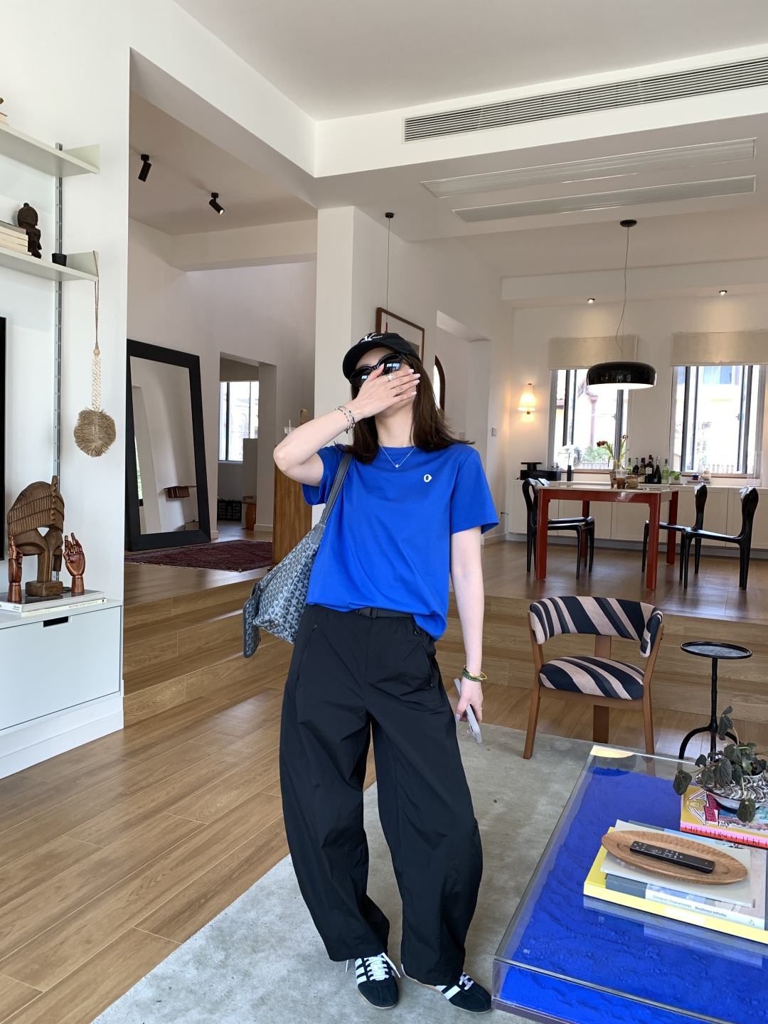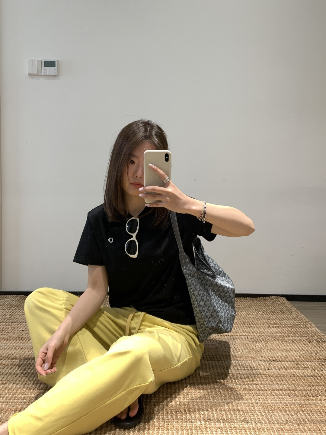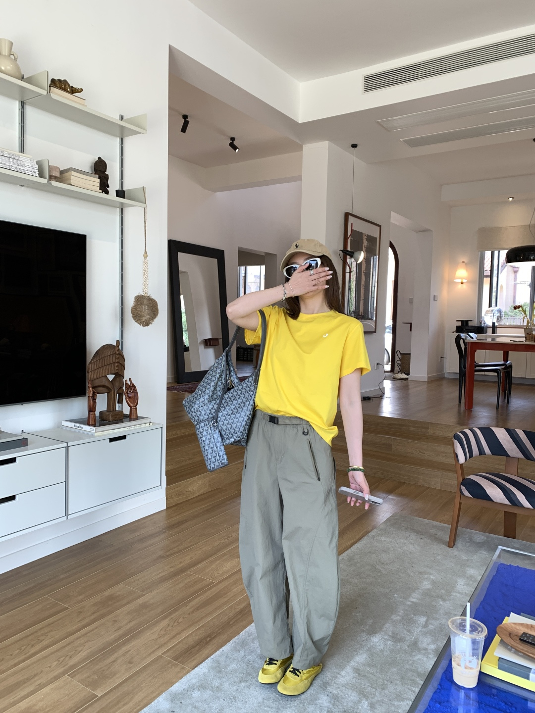 黑色就很适合搭配彩色裤装!基础的T搭配不基础的颜色 哈哈哈太实用了