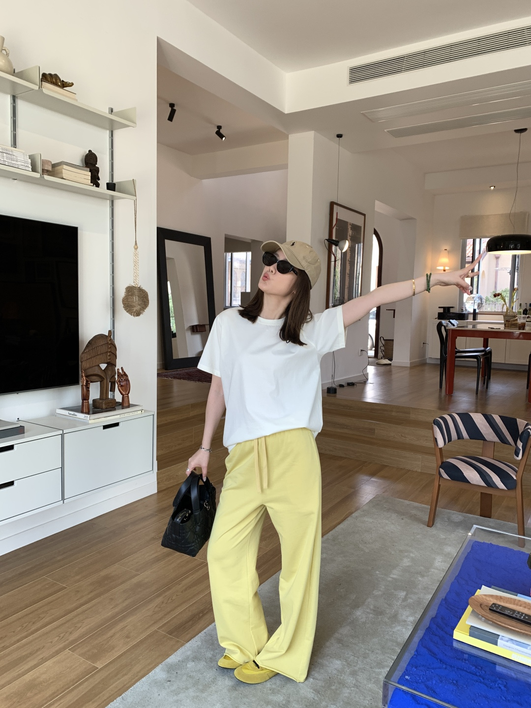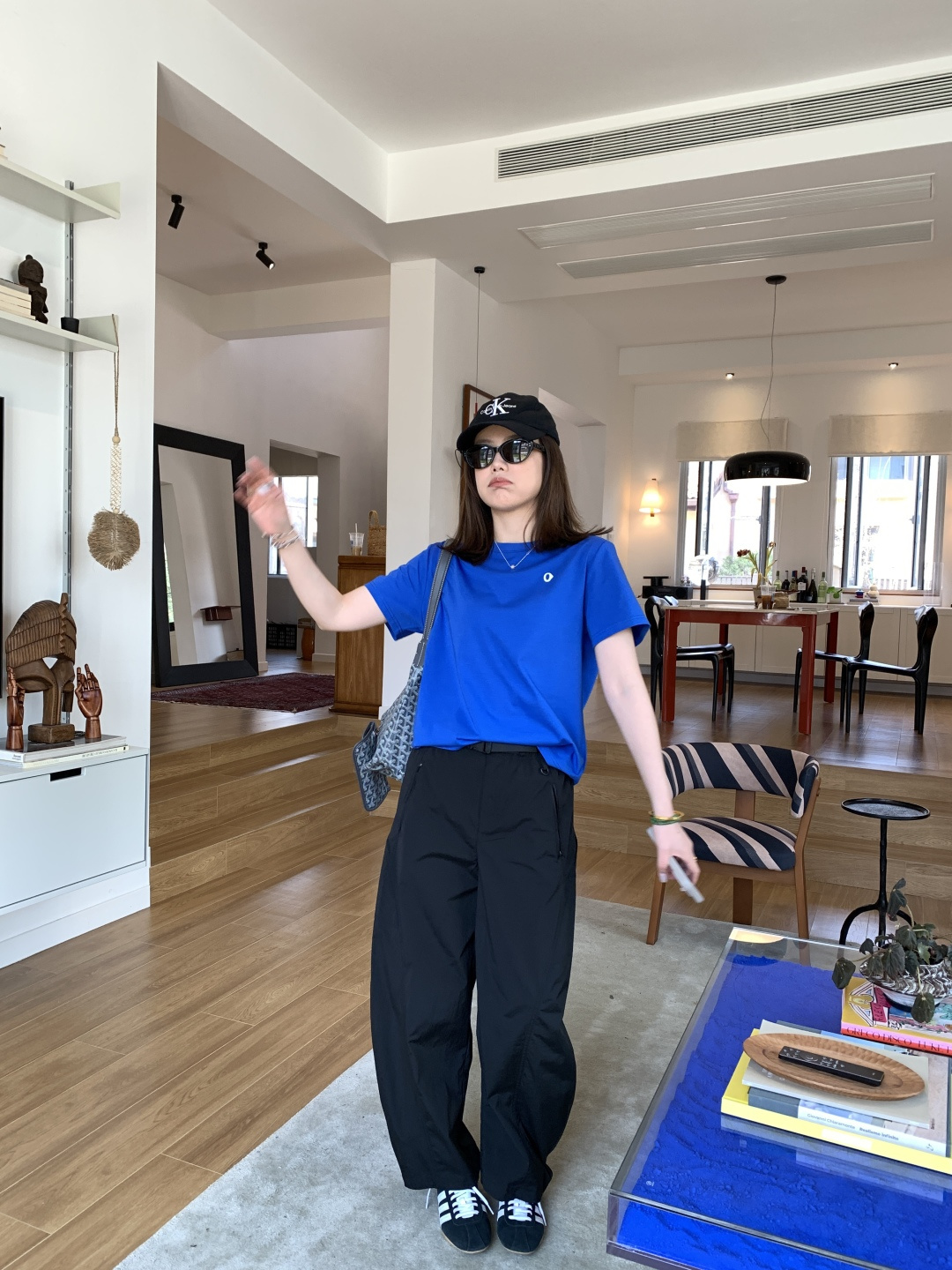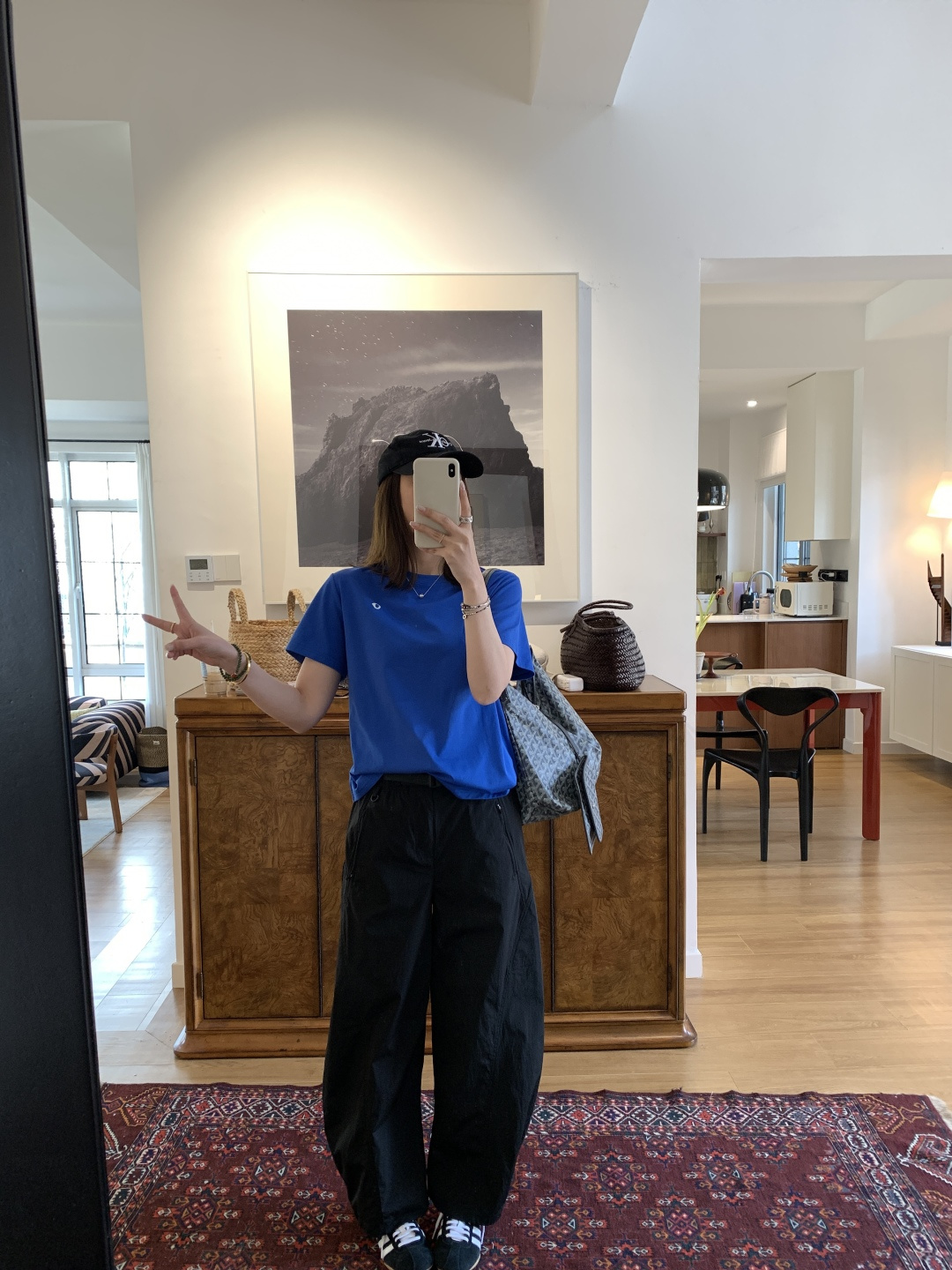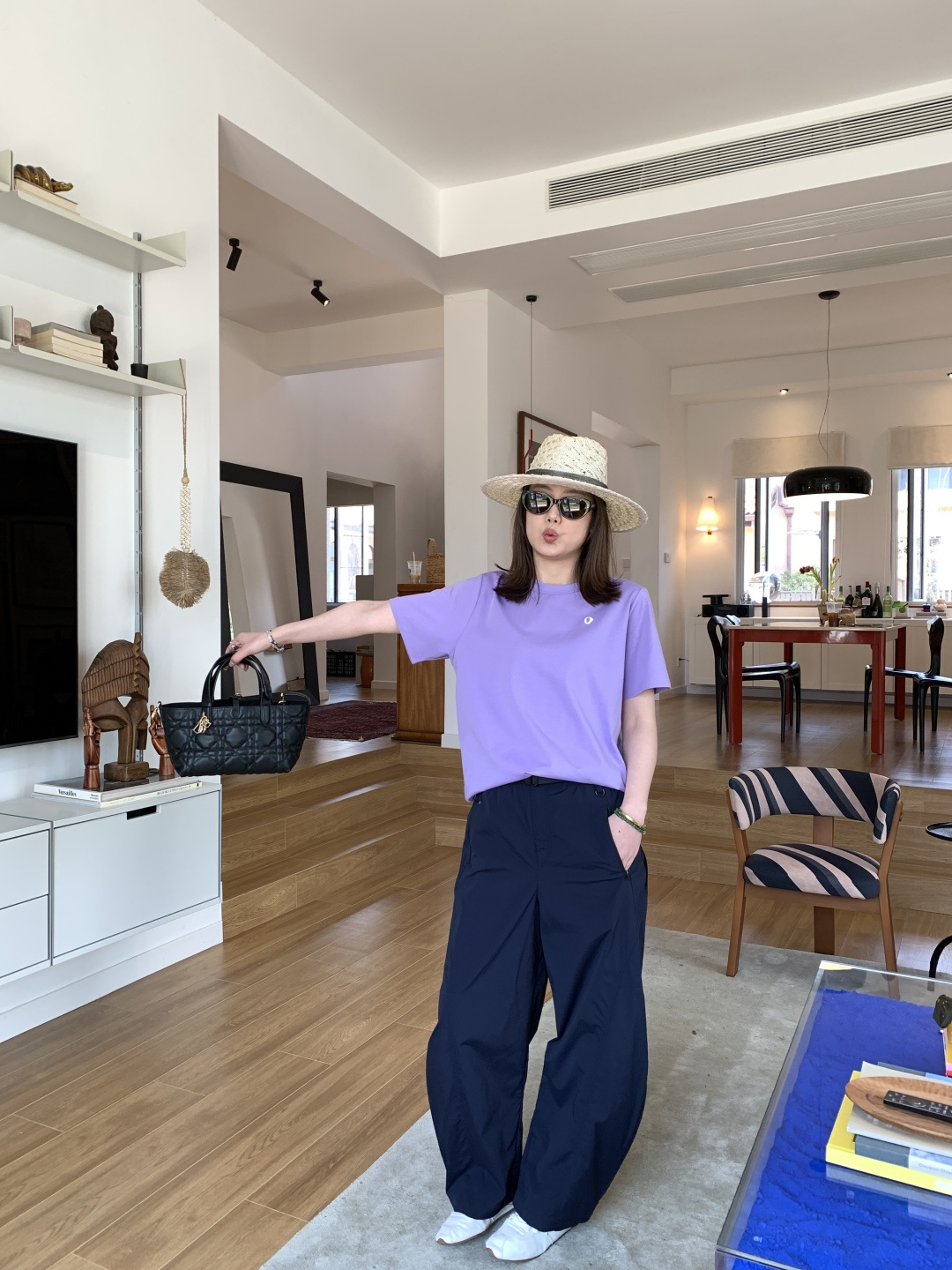 黑色就很适合搭配彩色裤装!基础的T搭配不基础的颜色 哈哈哈太实用了