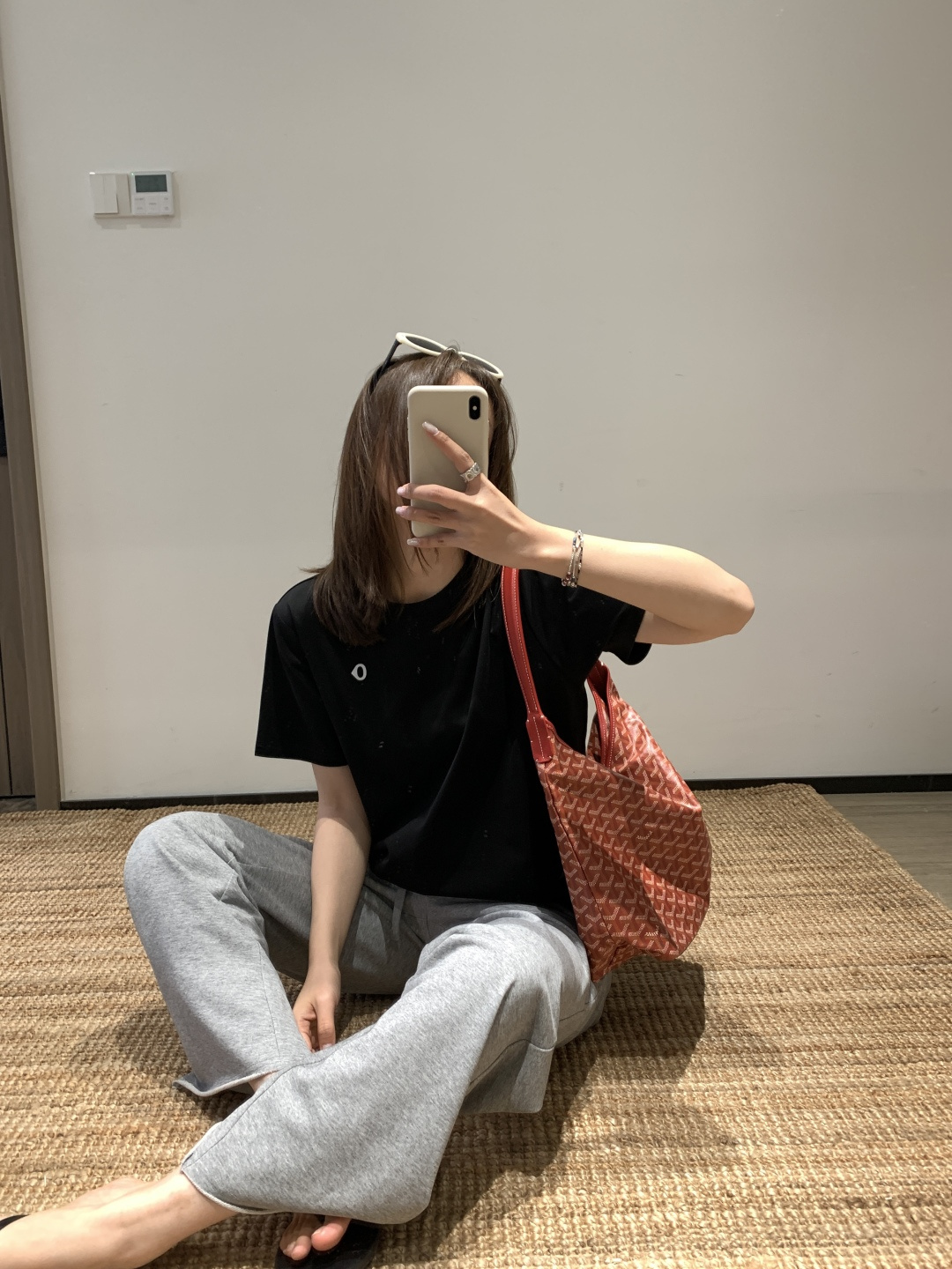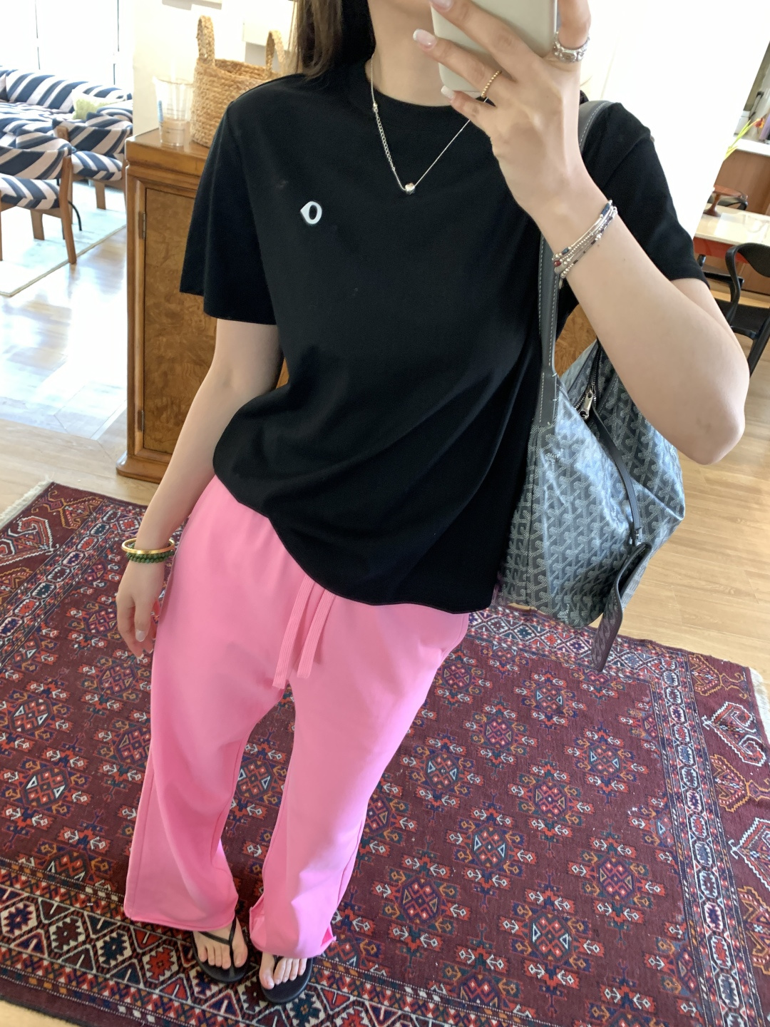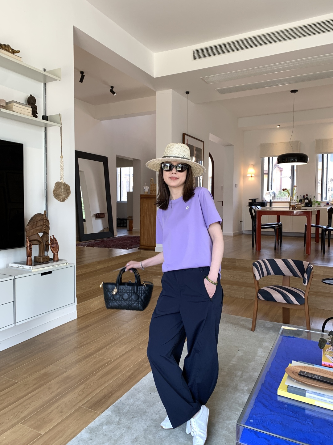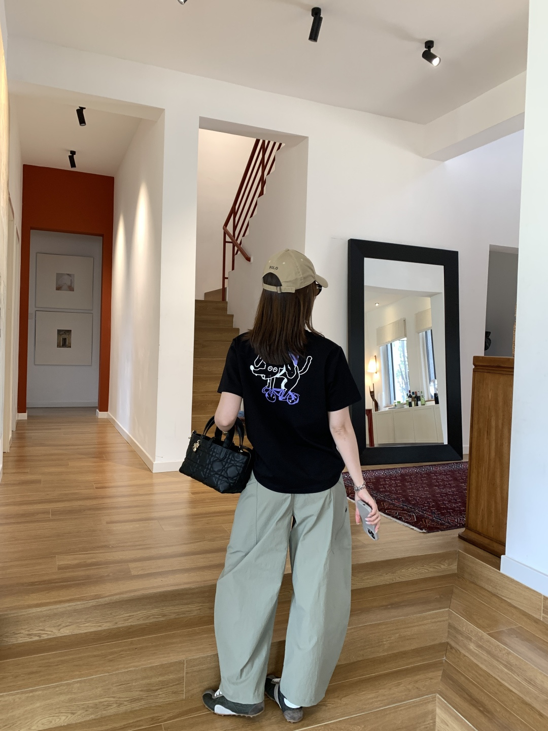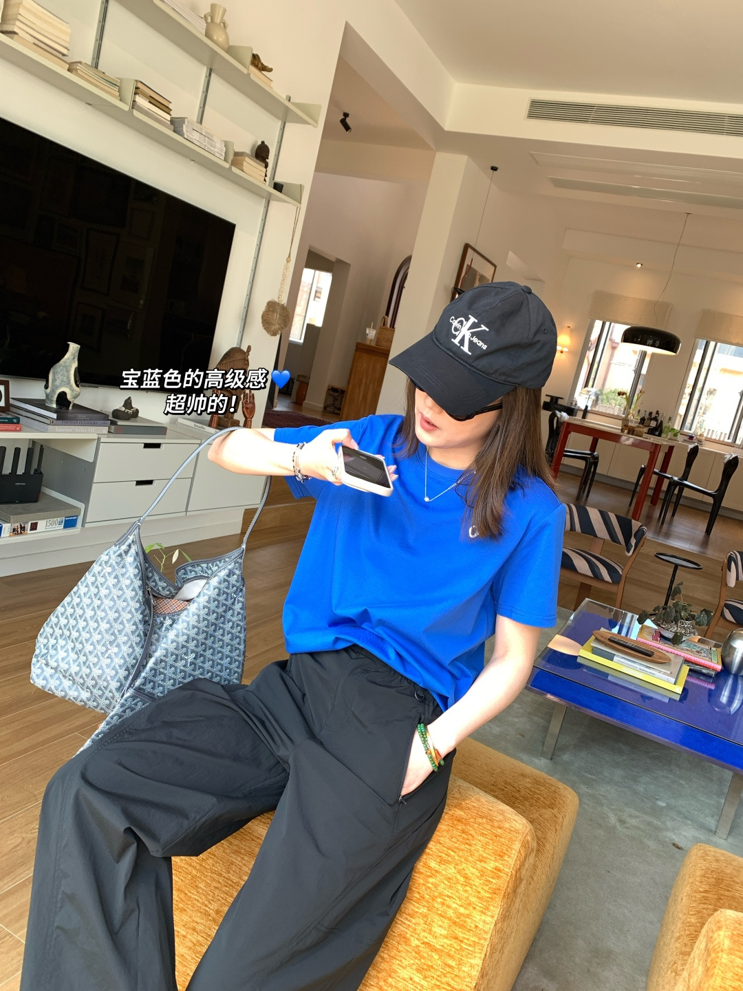 黑色就很适合搭配彩色裤装!基础的T搭配不基础的颜色 哈哈哈太实用了