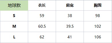 四款都是s m L三个码数 模特167cm 53kg上身图都是m效果 建议105斤以下s 105-120斤m 120-140斤L 总体来说 涂鸦款和邮差小狗都偏宽松一些 衣长长一些 地球款和基础款偏合身一些 微宽松版型 常规衣长