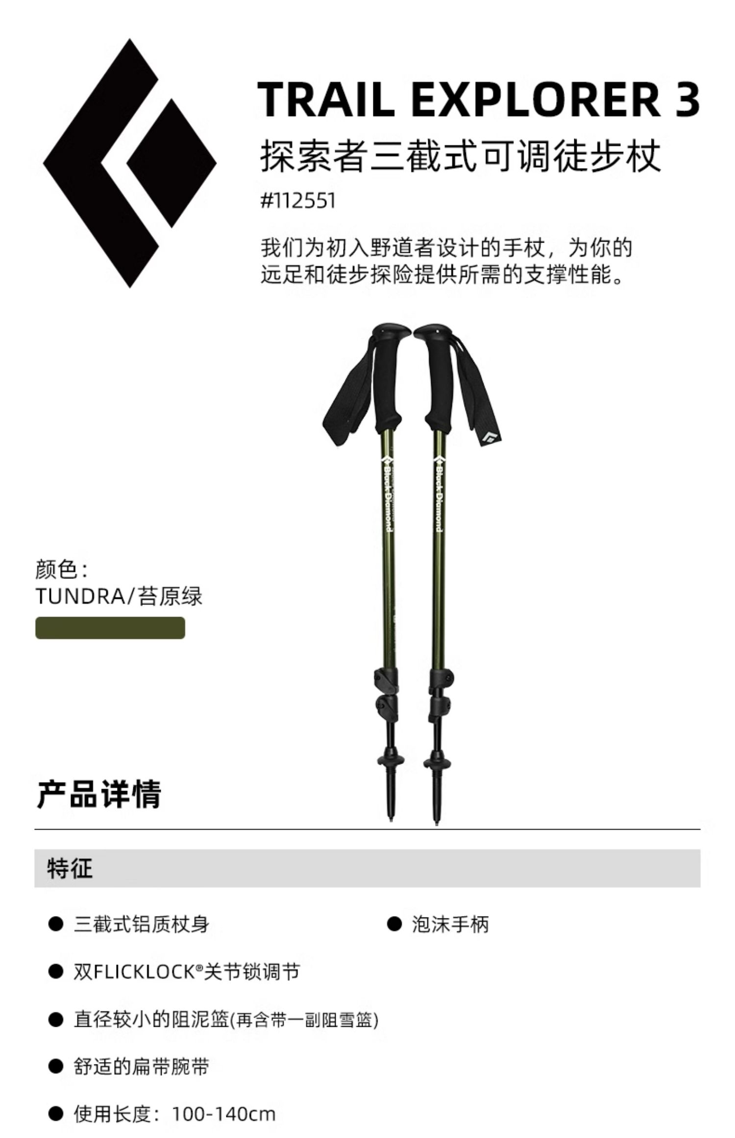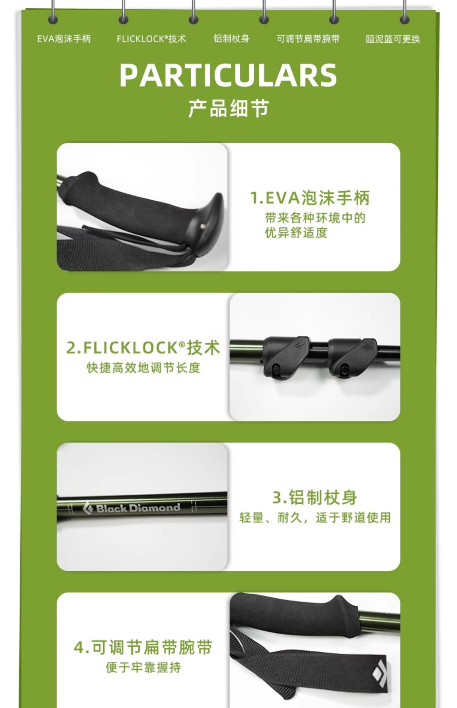 blackdiamond黑钻bd登山杖户外徒步手杖铝合金伸缩爬山杖112551