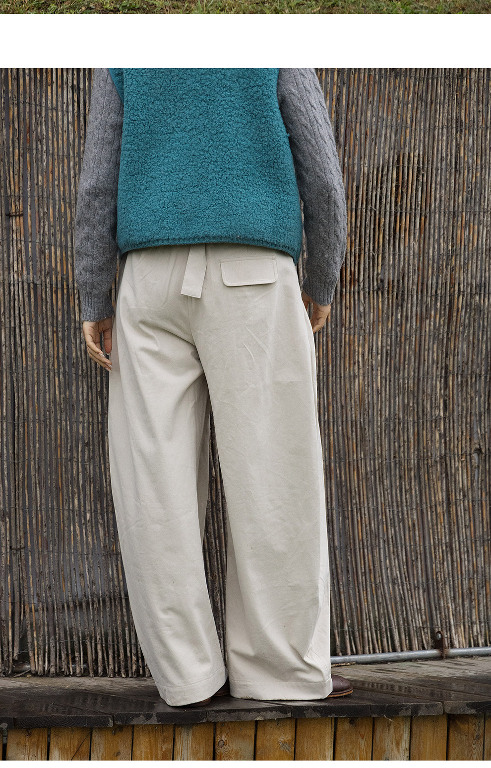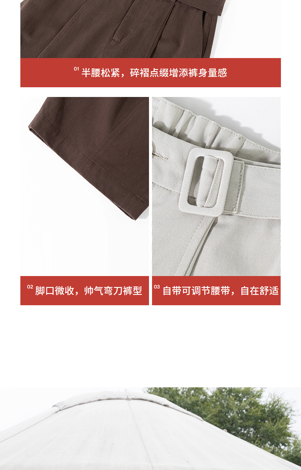 绽放688朵/小个子纯棉帅气压褶带腰带弯刀阔腿裤显高休闲裤女新款