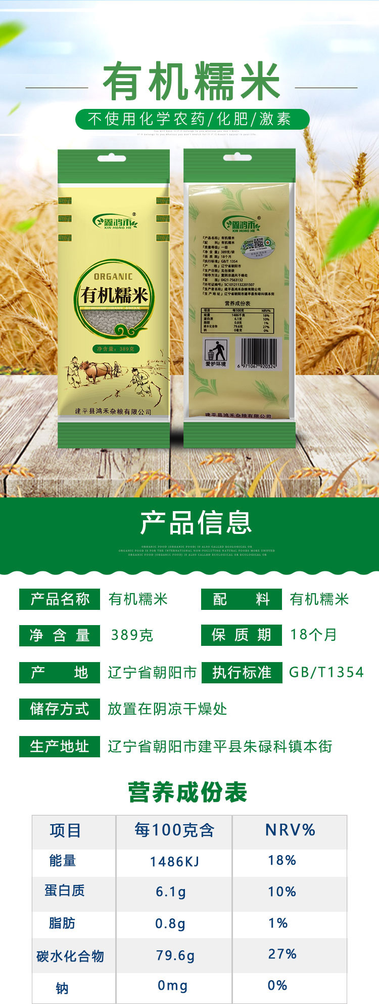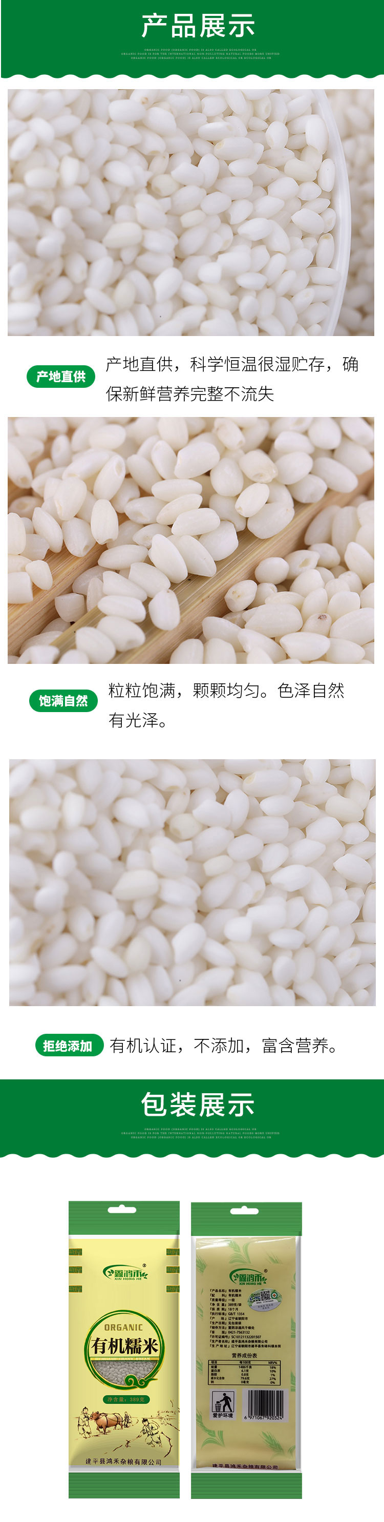 彩虹雨 有机杂粮 有机糯米389g 满百包邮