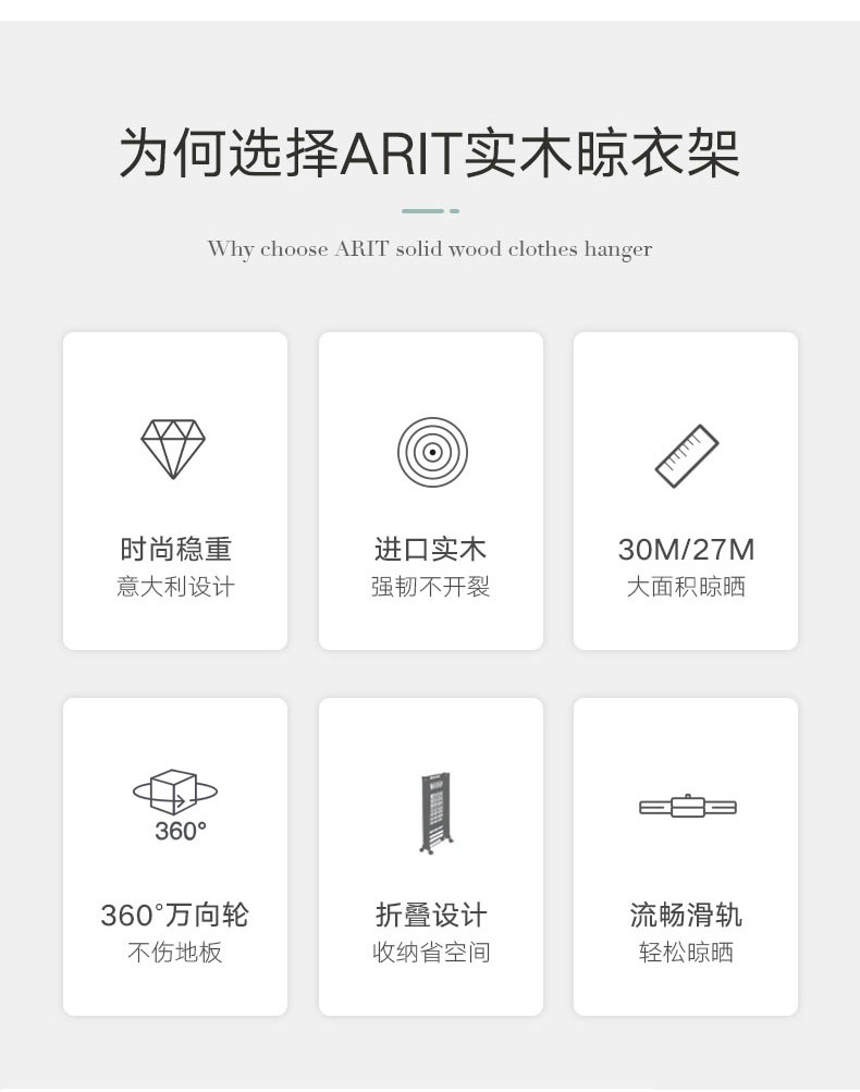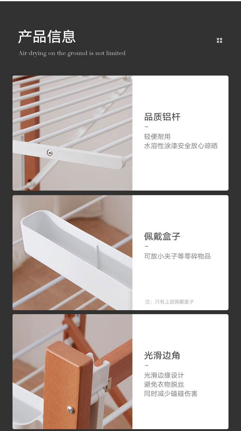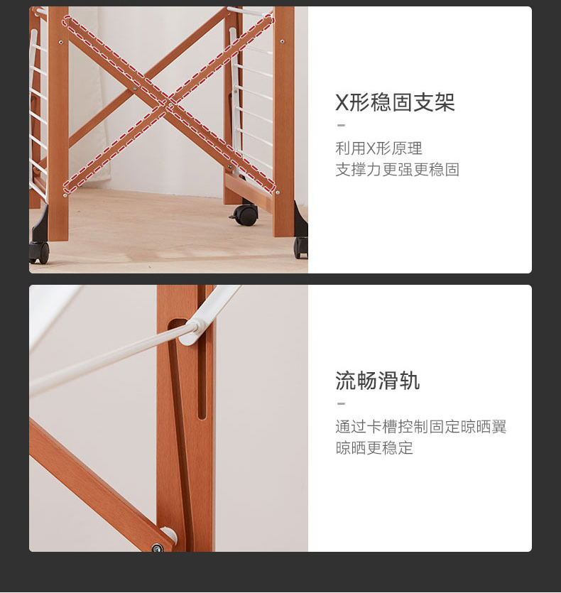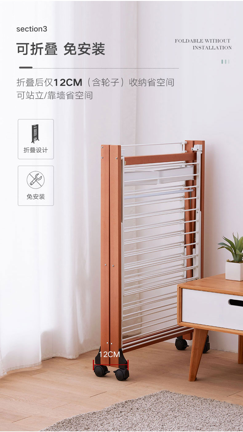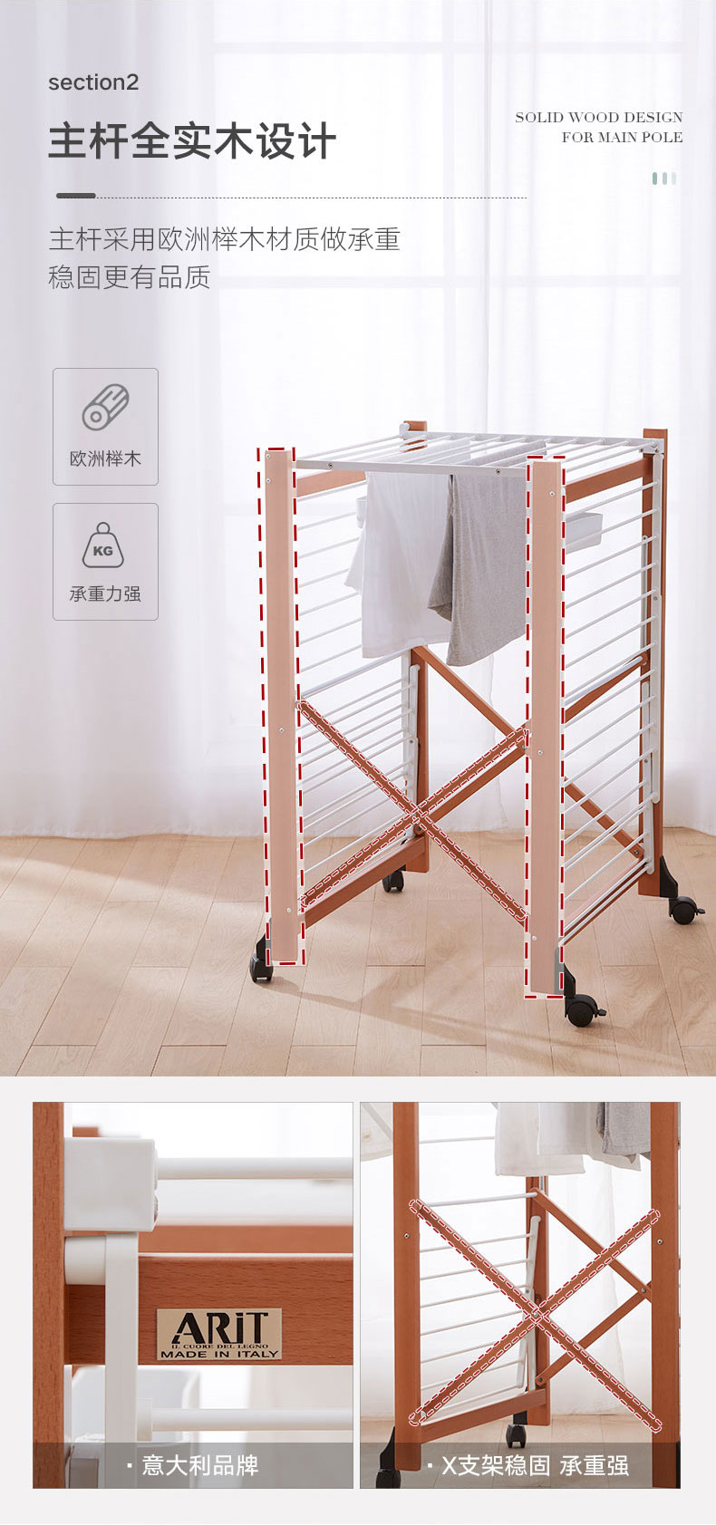【6F】利快意大利进口三层晾衣架实木可移动折叠阳台落地伸缩衣杆晒衣架 三层晾衣架 27M