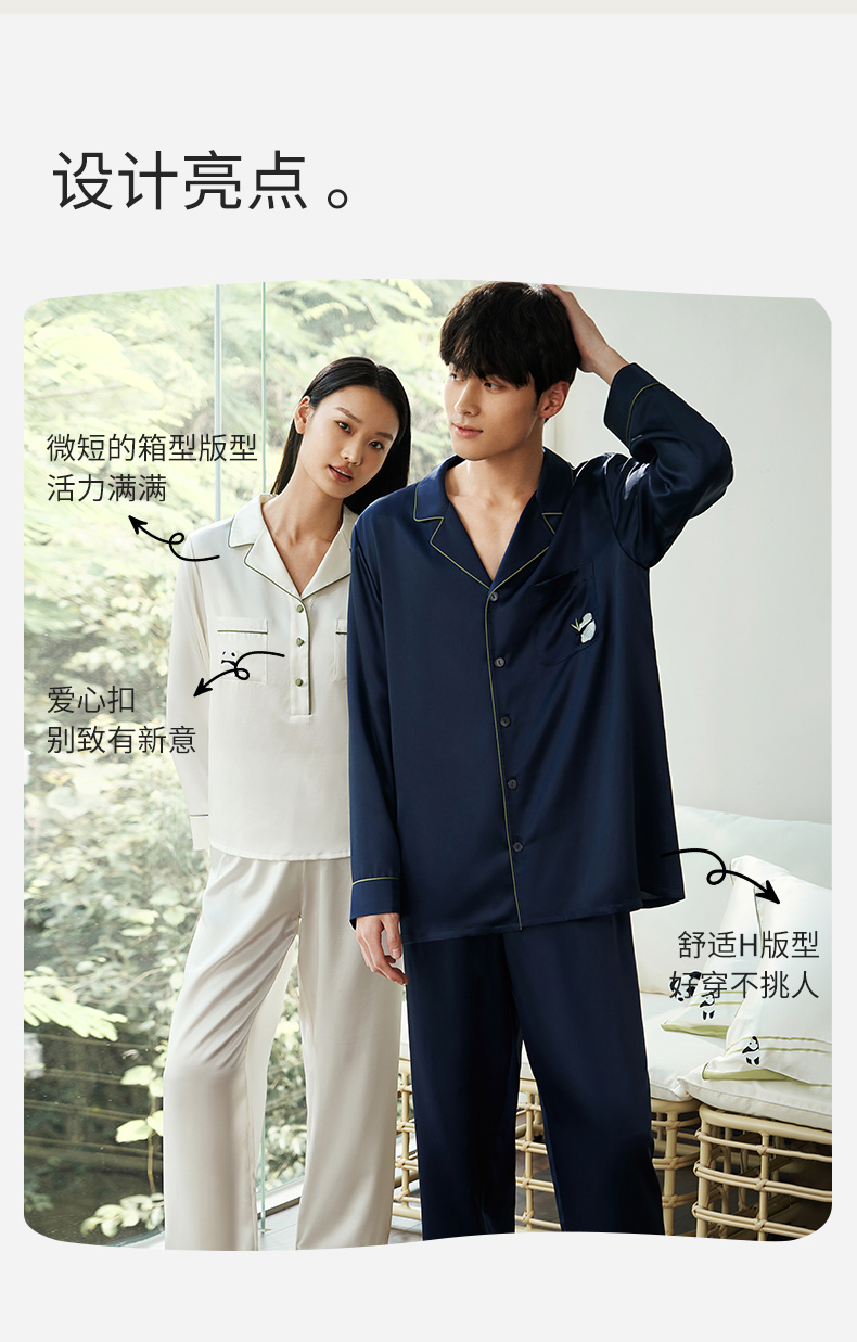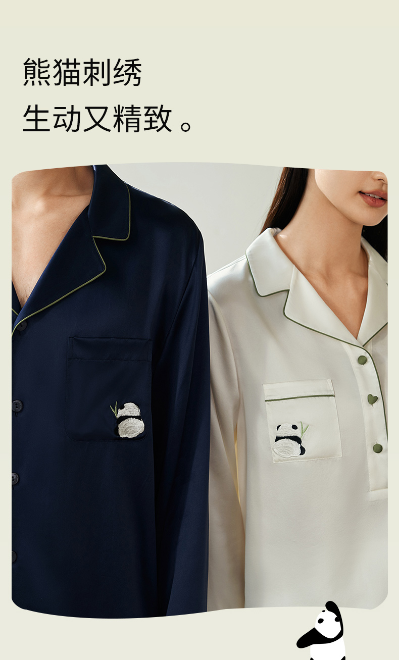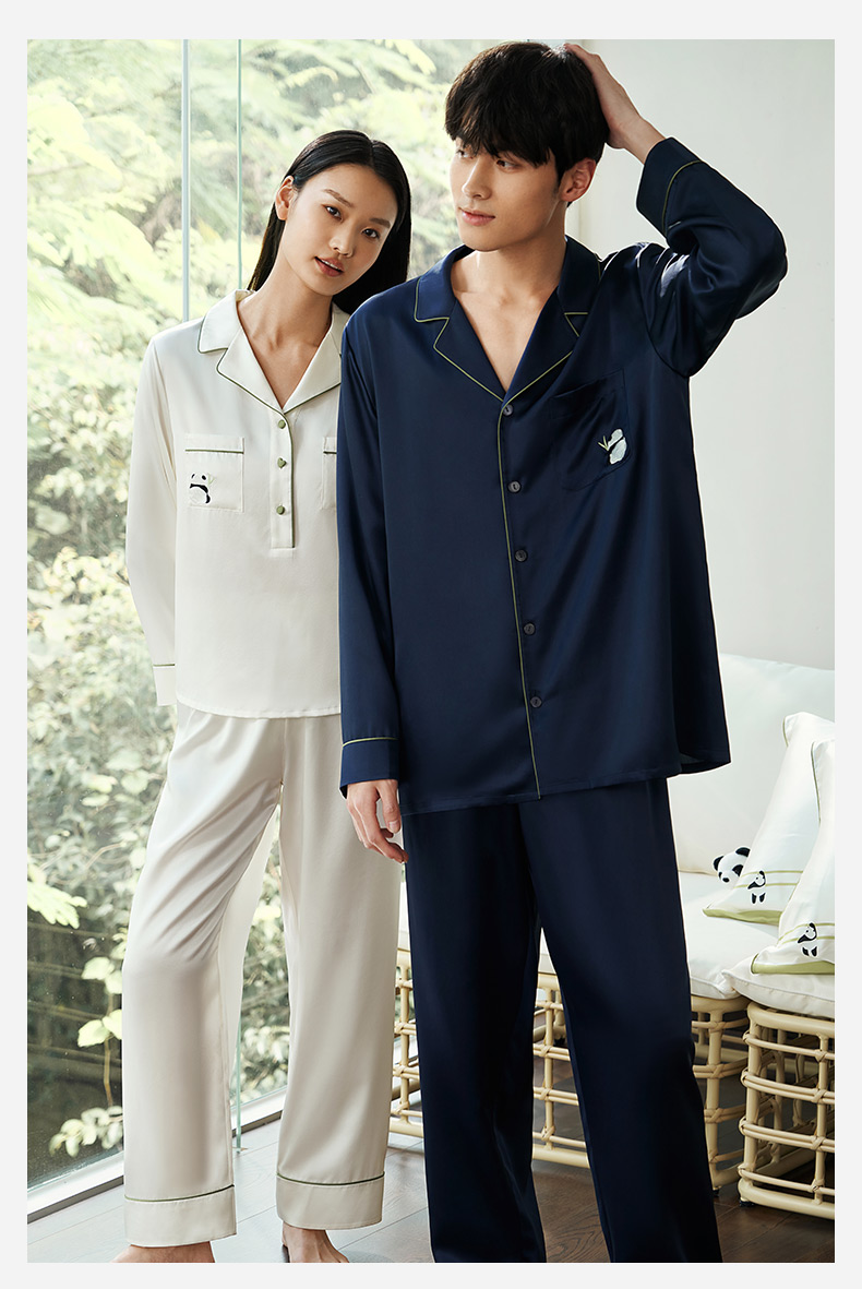 【情人节礼物】金三塔19姆米真丝睡衣情侣刺绣桑蚕丝睡衣套装男女家居服 YSFEA202/YSMEA201