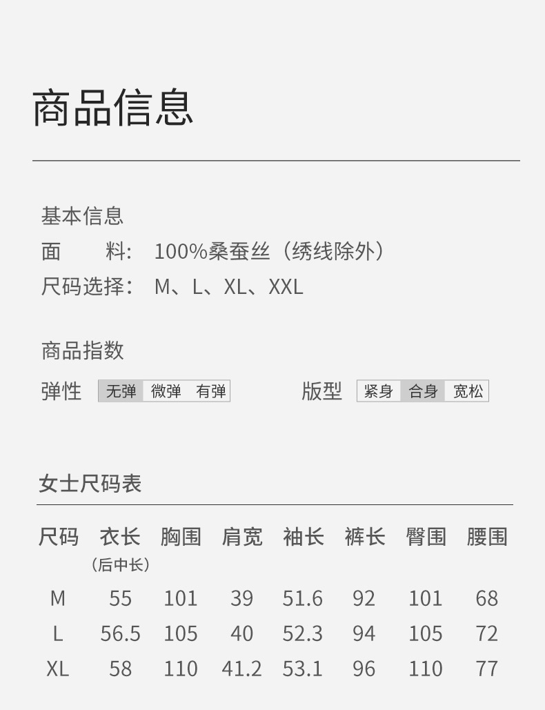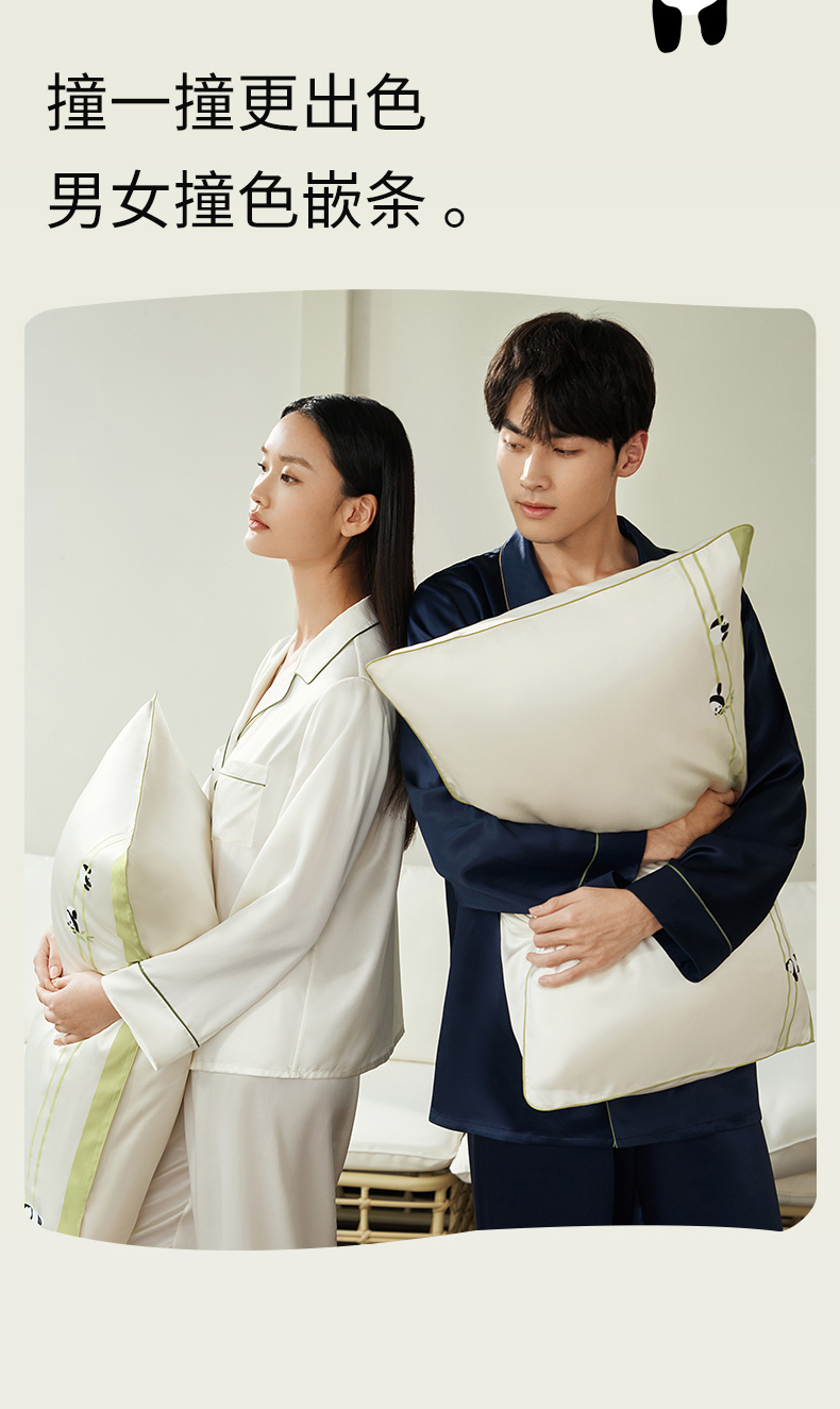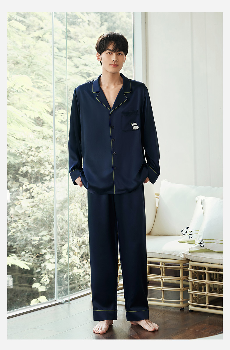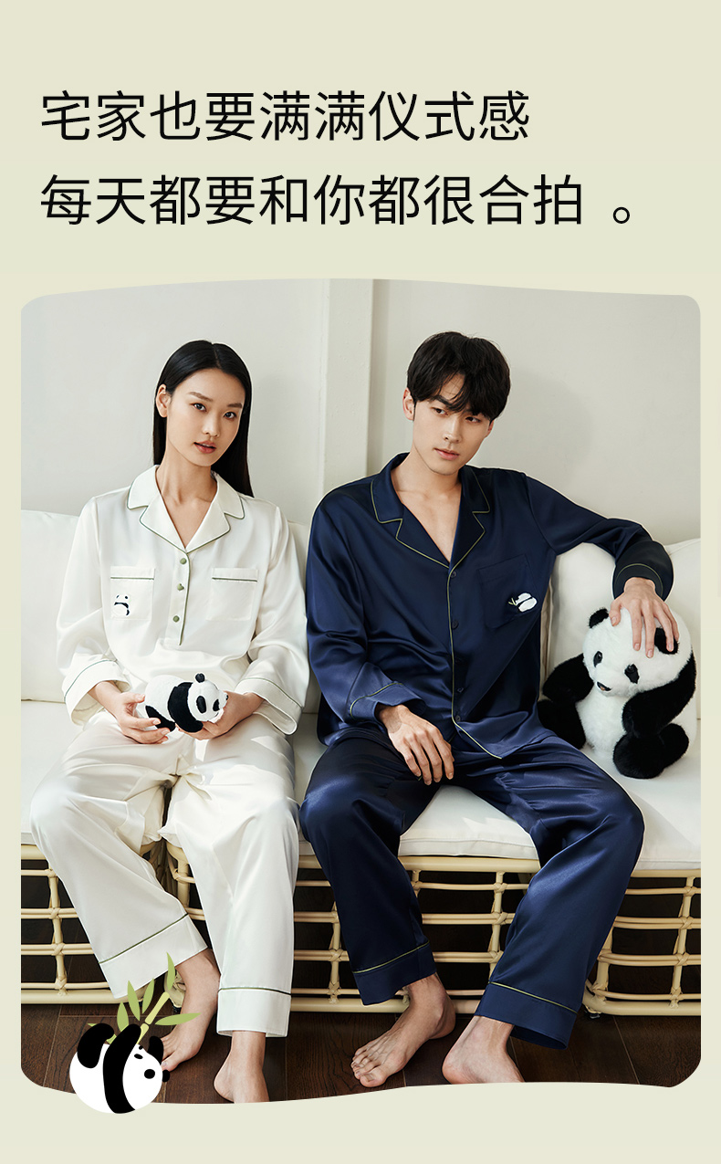 【情人节礼物】金三塔19姆米真丝睡衣情侣刺绣桑蚕丝睡衣套装男女家居服 YSFEA202/YSMEA201