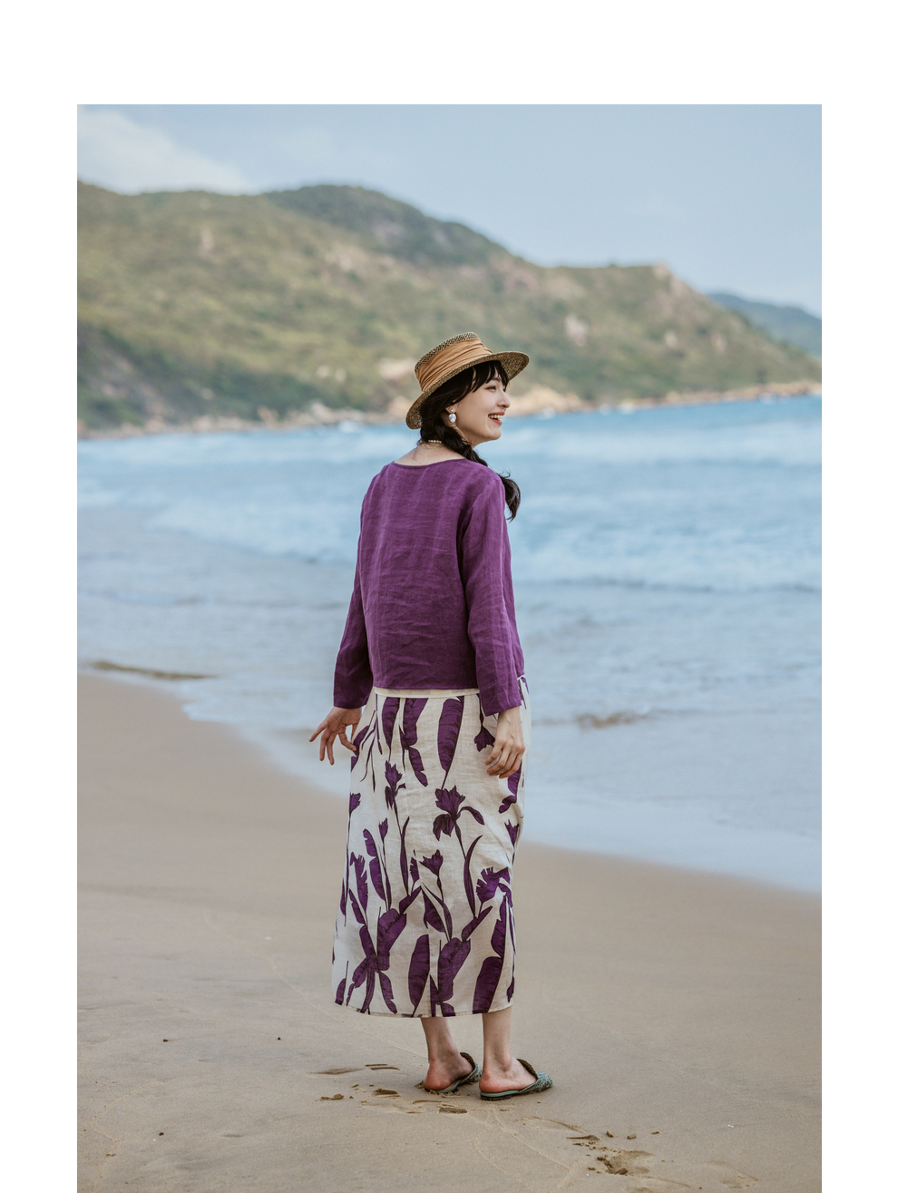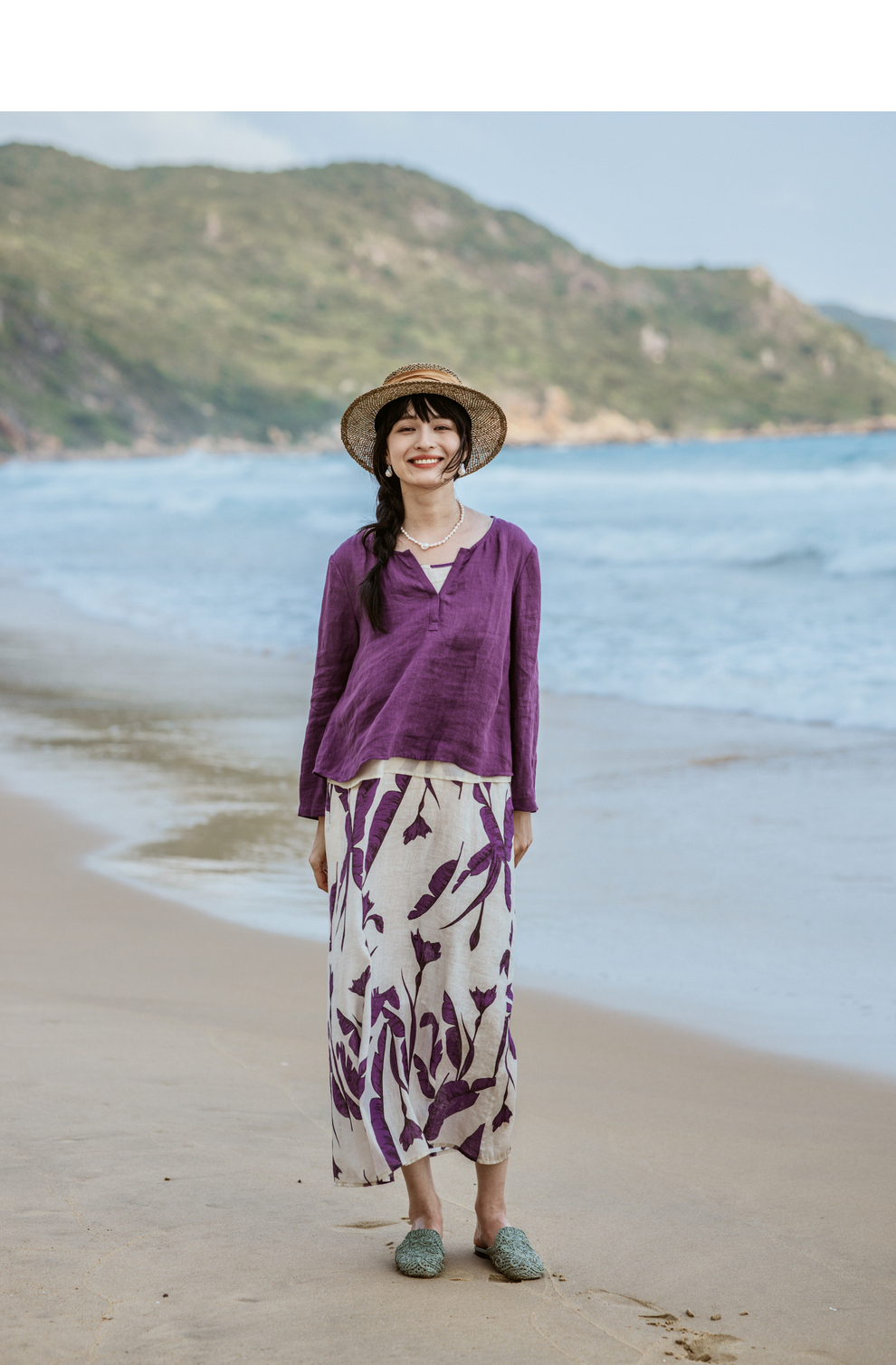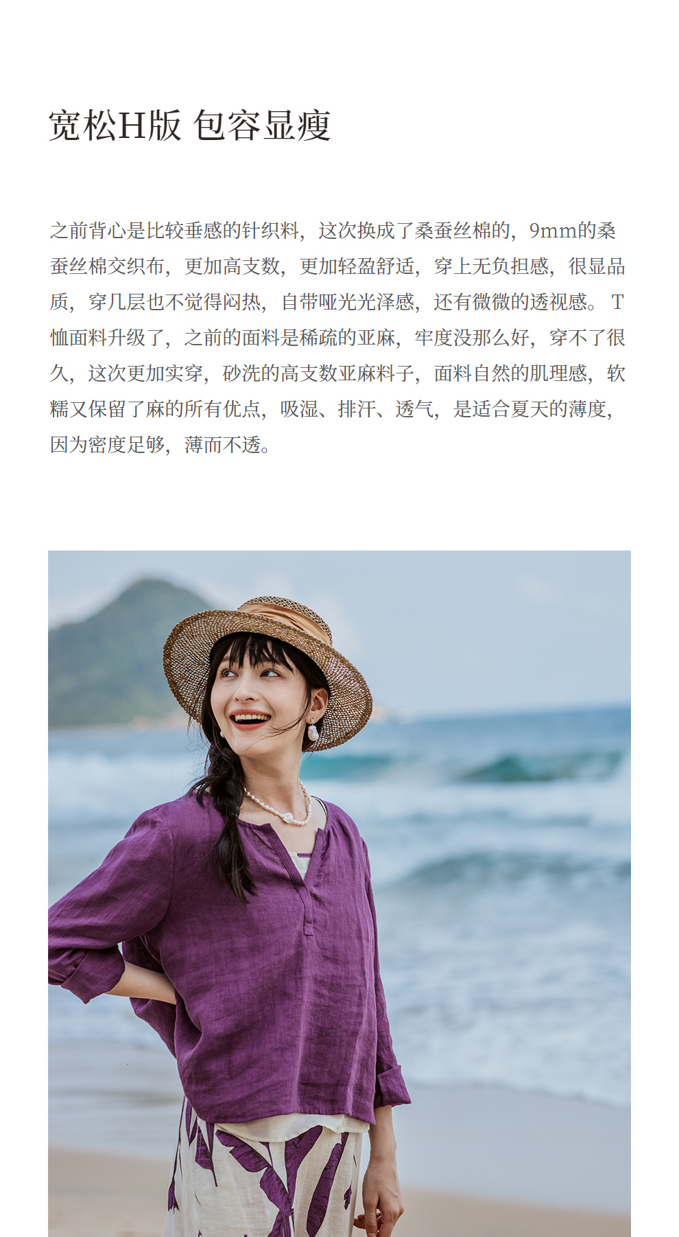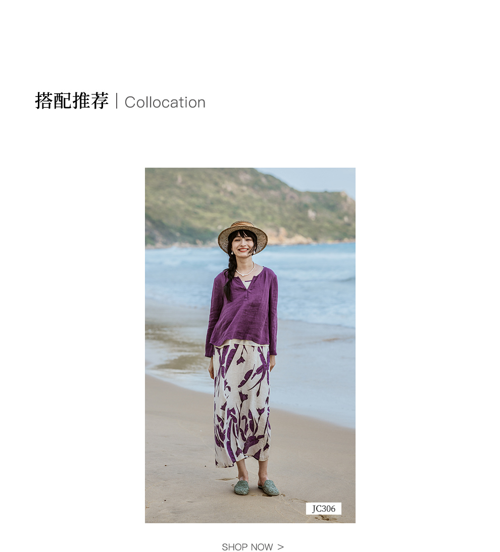 绽放旅行女装304-305朵/真丝棉背心紫色亚麻上衣背心旅游穿搭套装