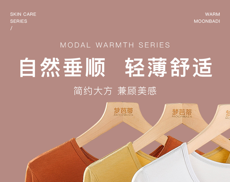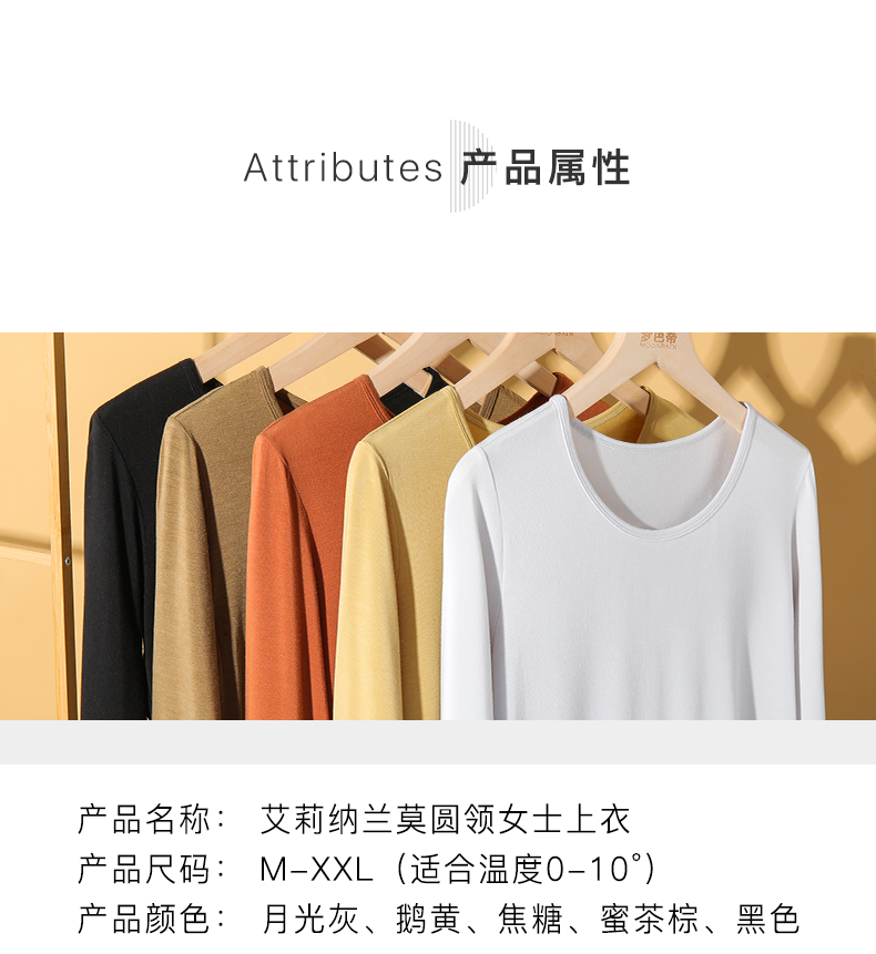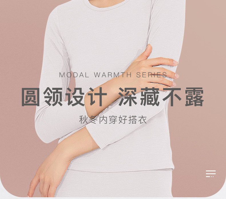梦芭蒂保暖内衣莫代尔舒适亲肤打底秋衣艾莉纳兰莫圆领女士上衣