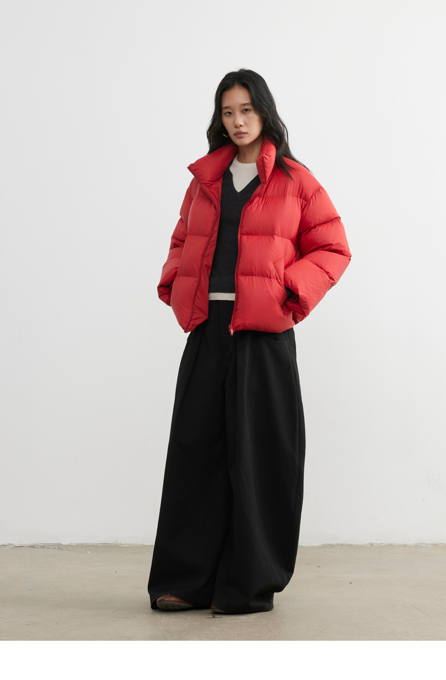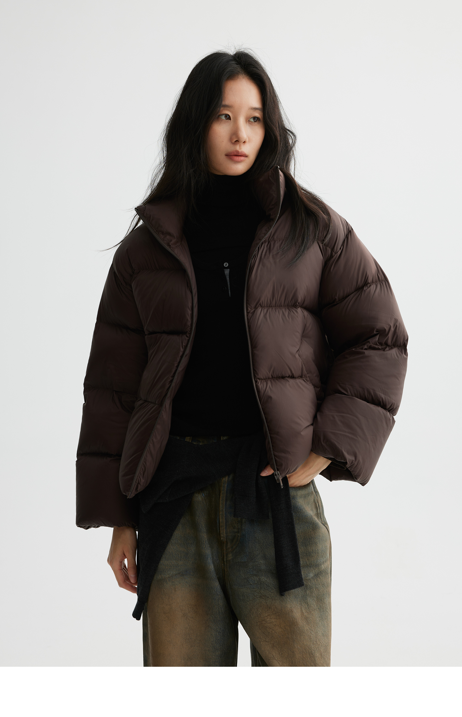 素舶 云朵零压白鸭绒高倍充绒量立领蓬松保暖轻盈短款泡芙羽绒服