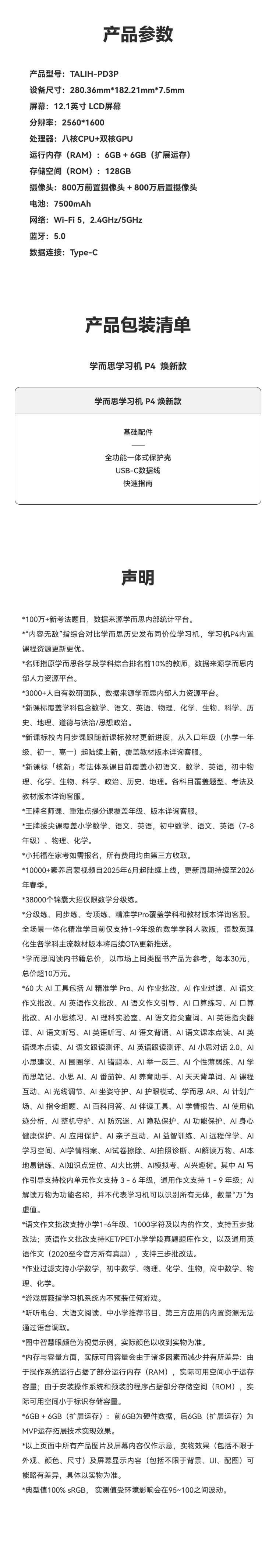 新品上市学而思学习机P4(128G)智能学习机大屏护眼儿童学生学习神器家教机