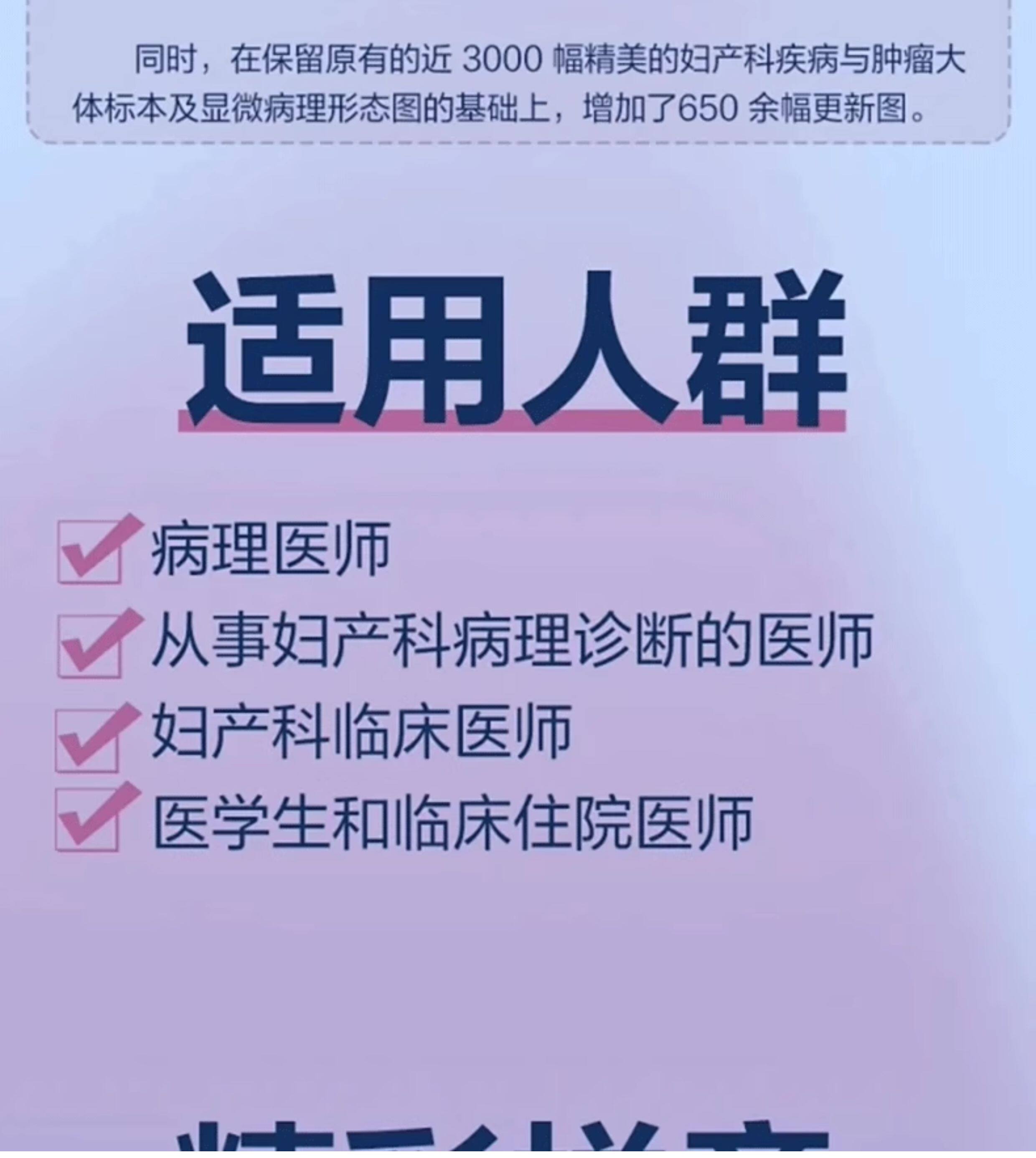 本书主要面向全国病理医师,尤其适用于从事妇产科病 理诊断的医师,同时也是妇产科临床医师、医学生和临 床住院医师学习妇产科病理学的理想参考书。