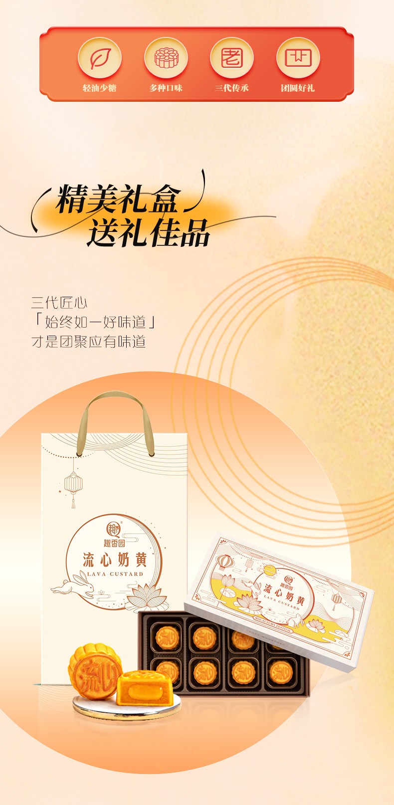 【赠品】趣香园流心奶黄月饼360g(8个)礼盒装 香港监制 包邮