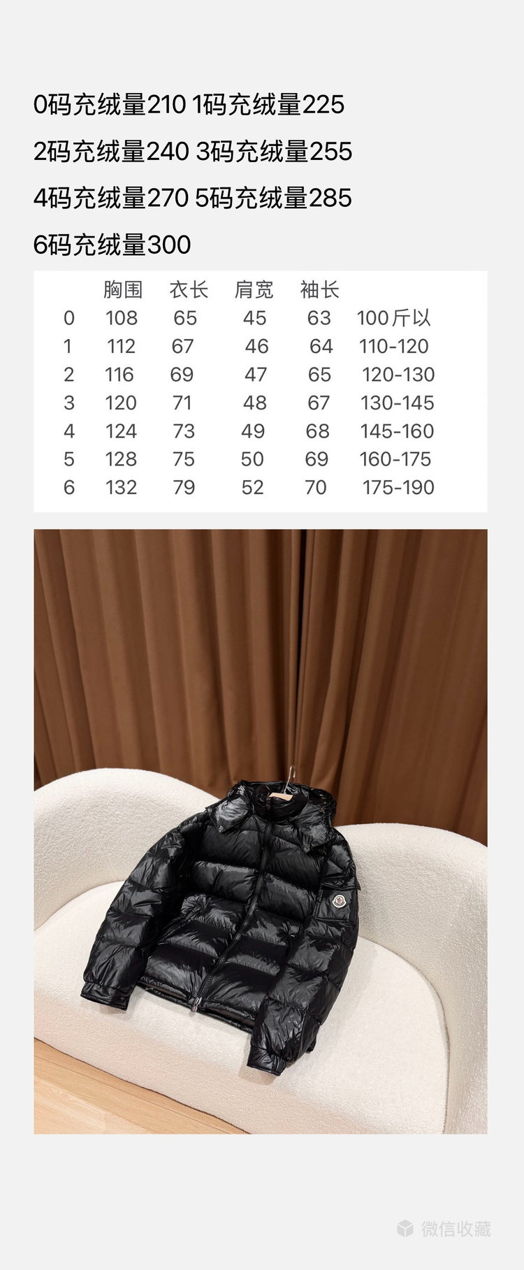 0码充绒量210 1码充绒量225