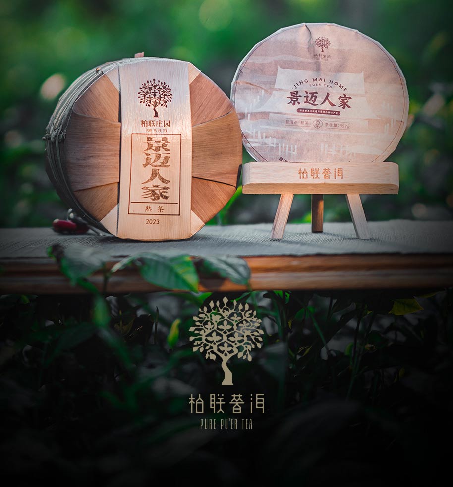 柏联普洱 茶叶 2023景迈人家 原产地发酵陈化熟茶原料饼茶紧压茶357g