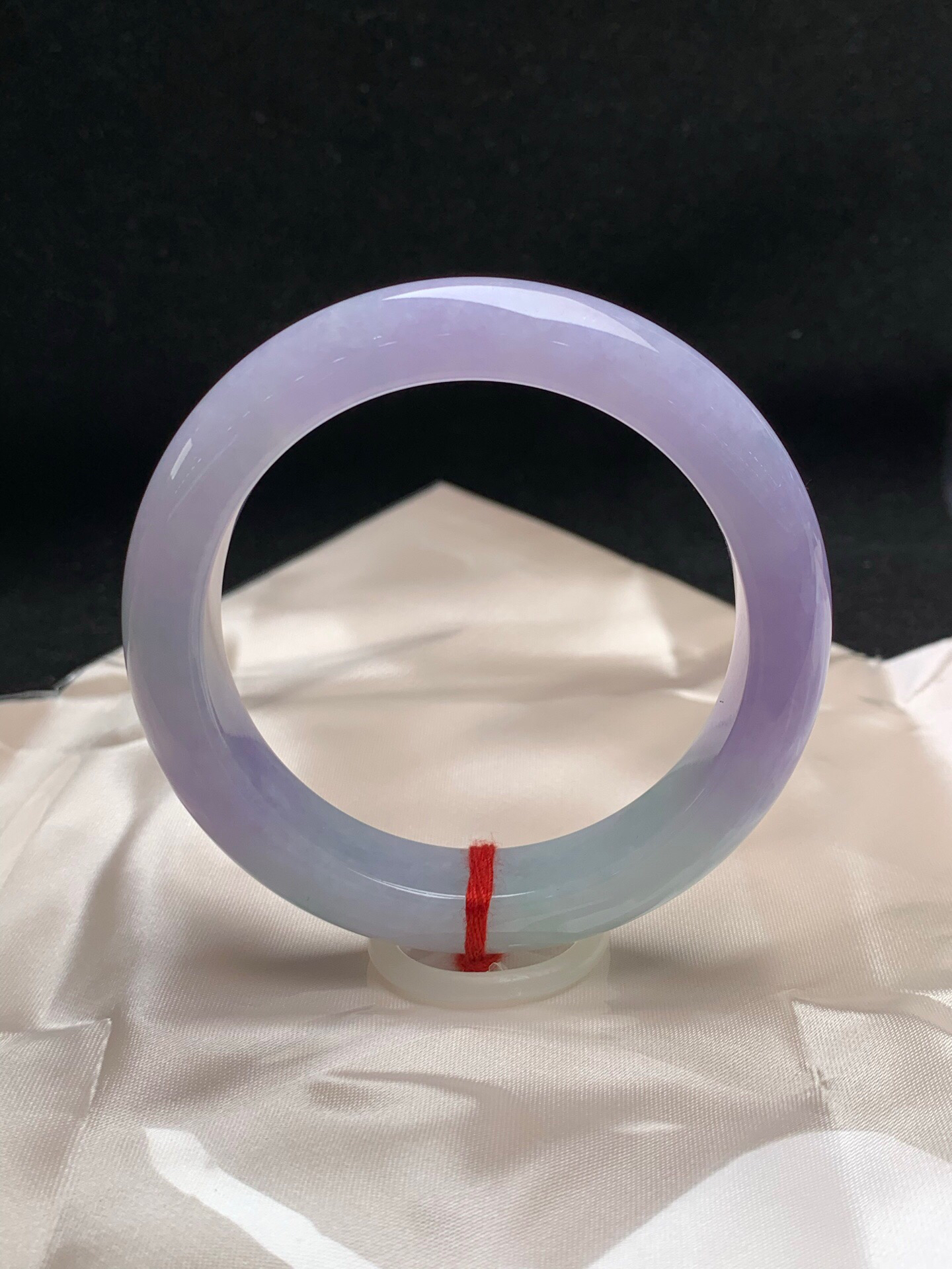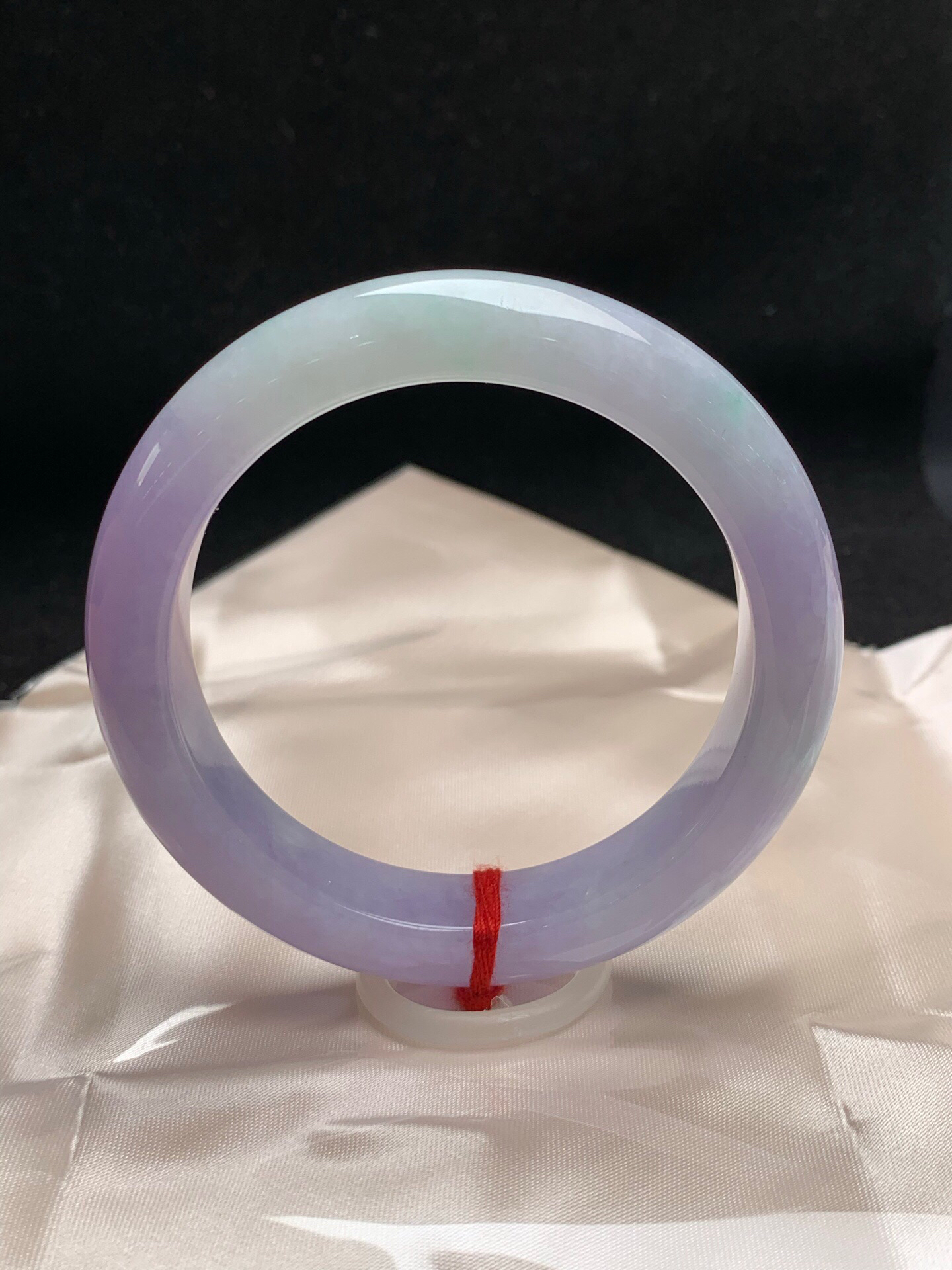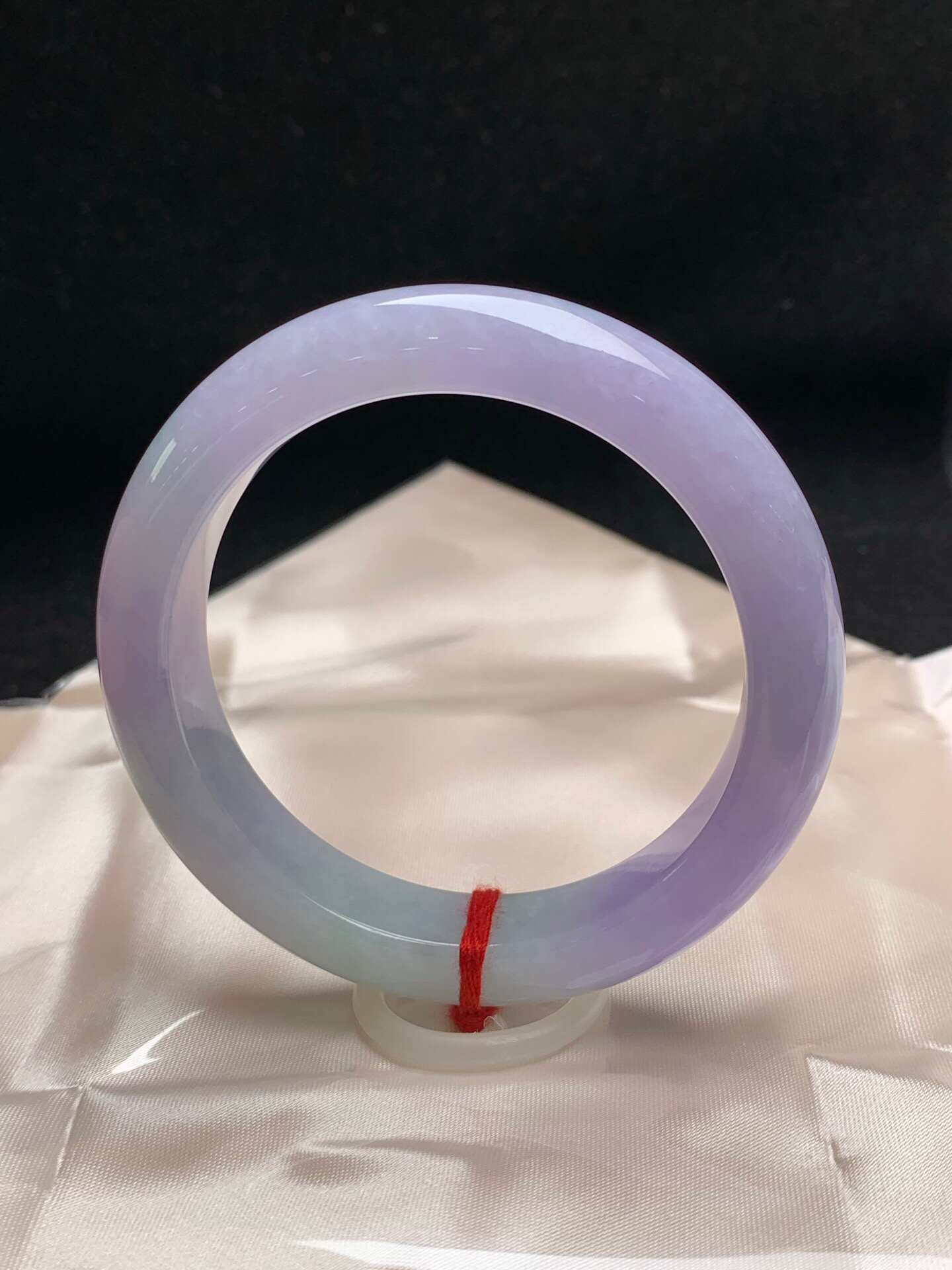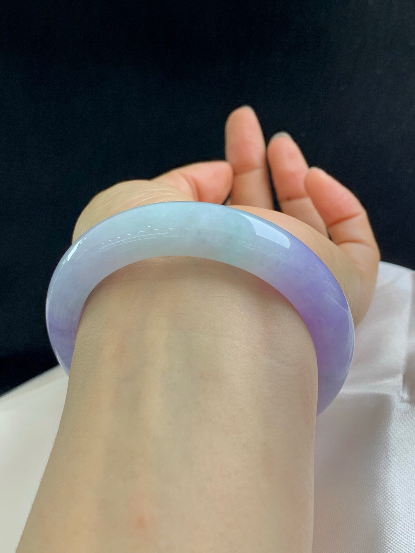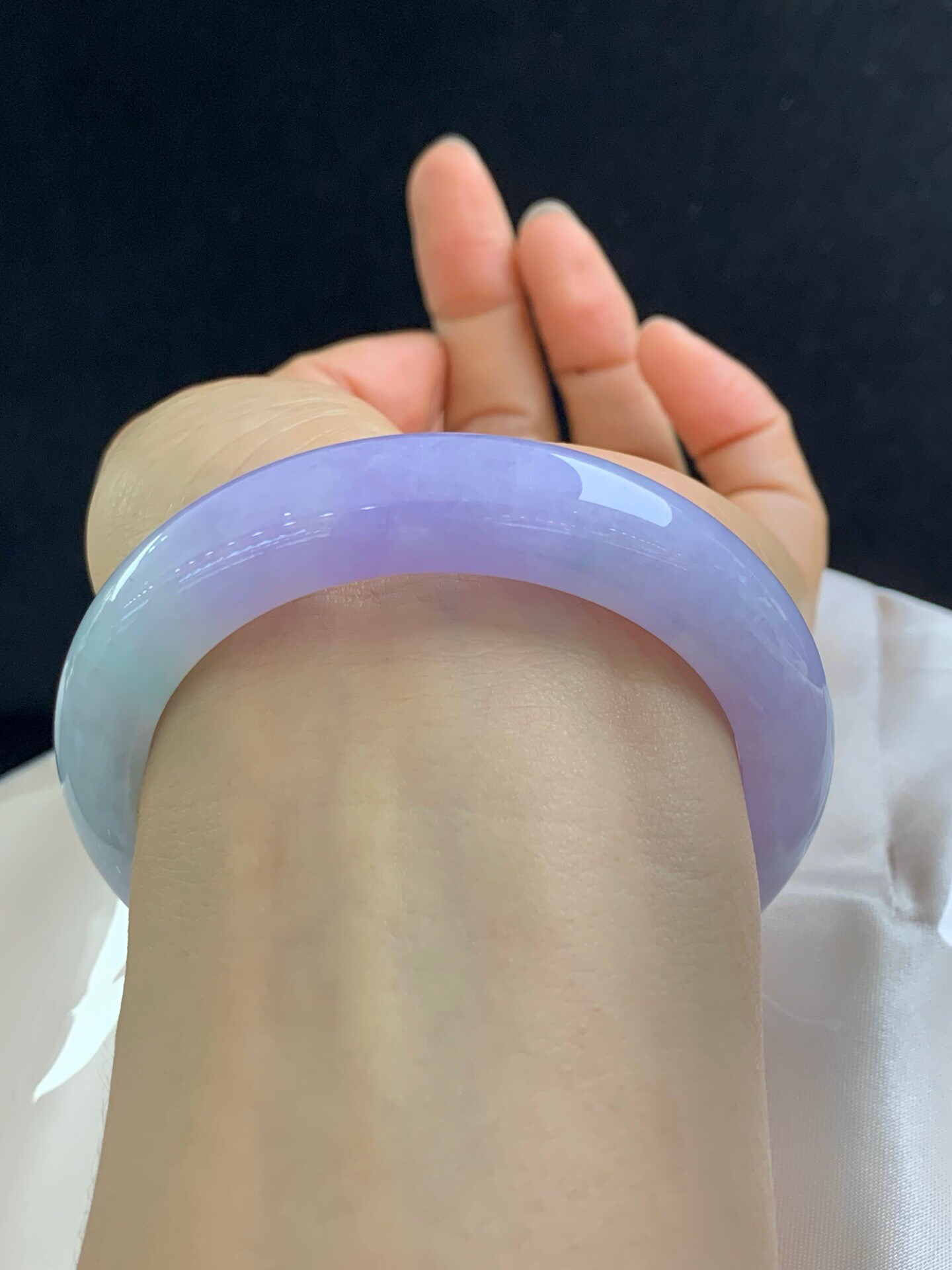 620009,56.8圈口,糯化紫罗兰正圈平安镯,浓紫底带一截淡绿,春彩色系,种老水足,底子细腻,完美,尺寸:56.8-13-9.5,超值价💰49000 #优石客珠宝#香玉荟萃