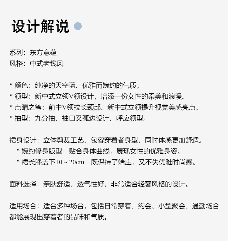 E-“定制”—「东方意蕴」—“中式老钱”—Lady挚爱、天空蓝连衣裙 2401184