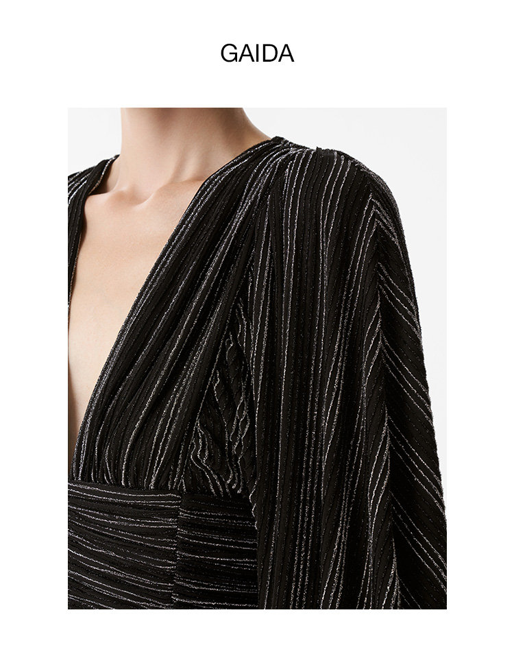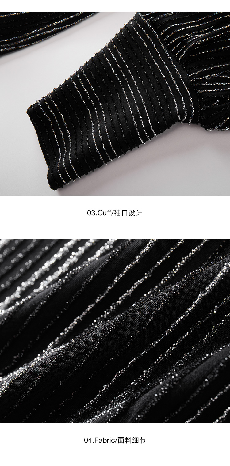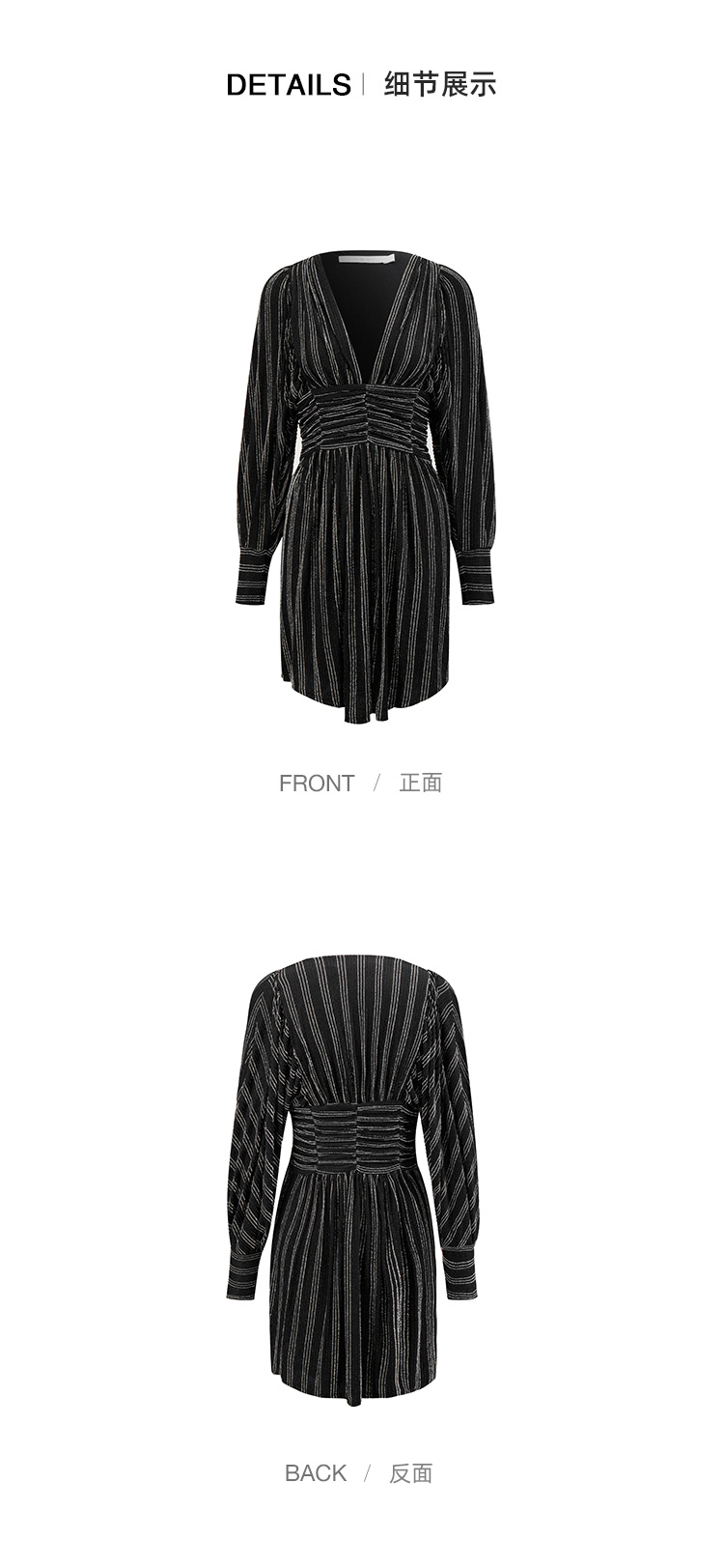 【2F】IRO春季新款法式轻奢女装气质裹腰银丝条纹短款灯笼袖连衣裙