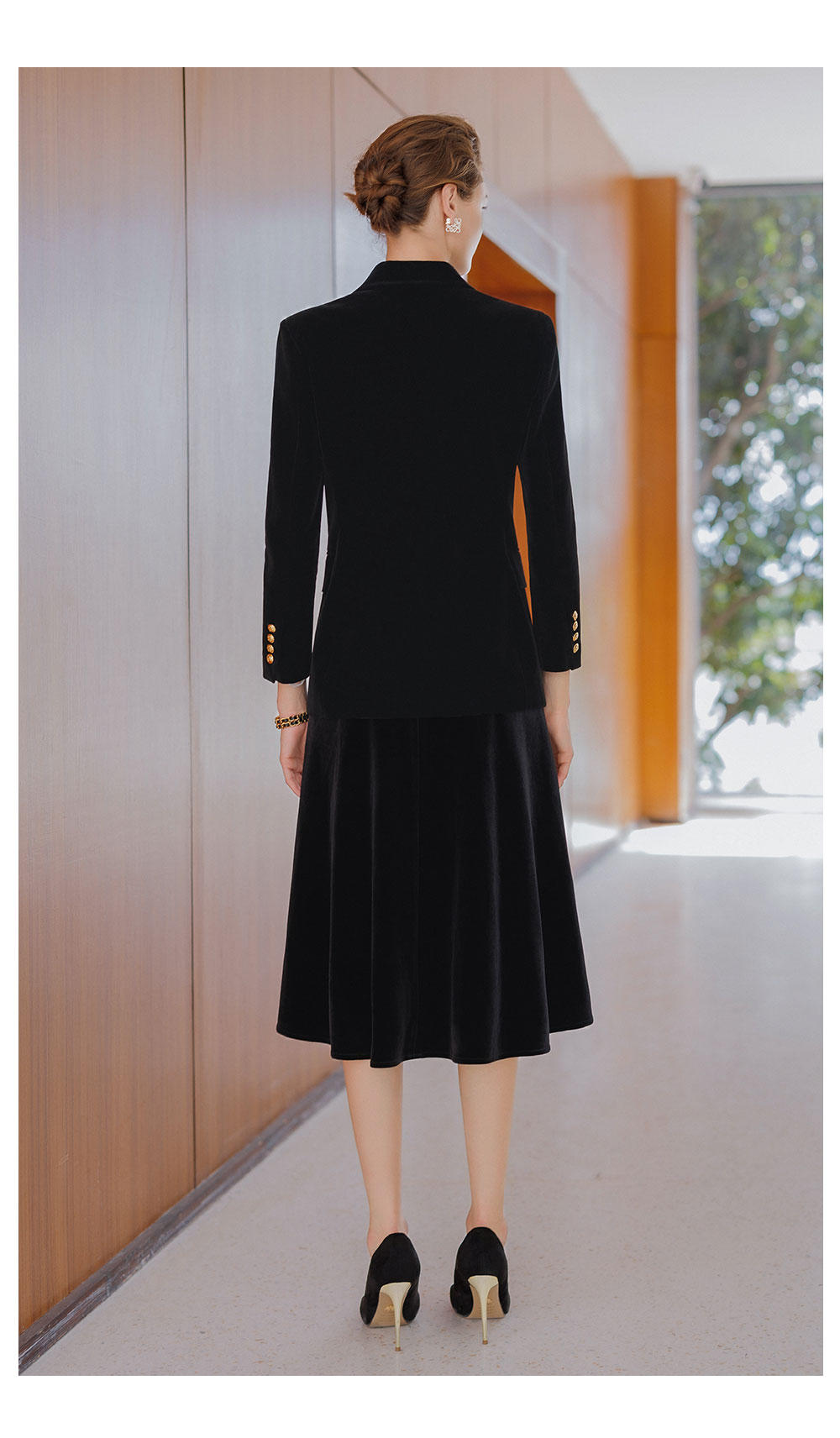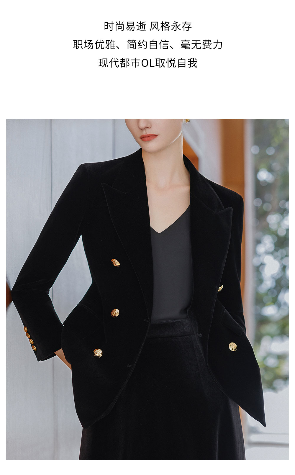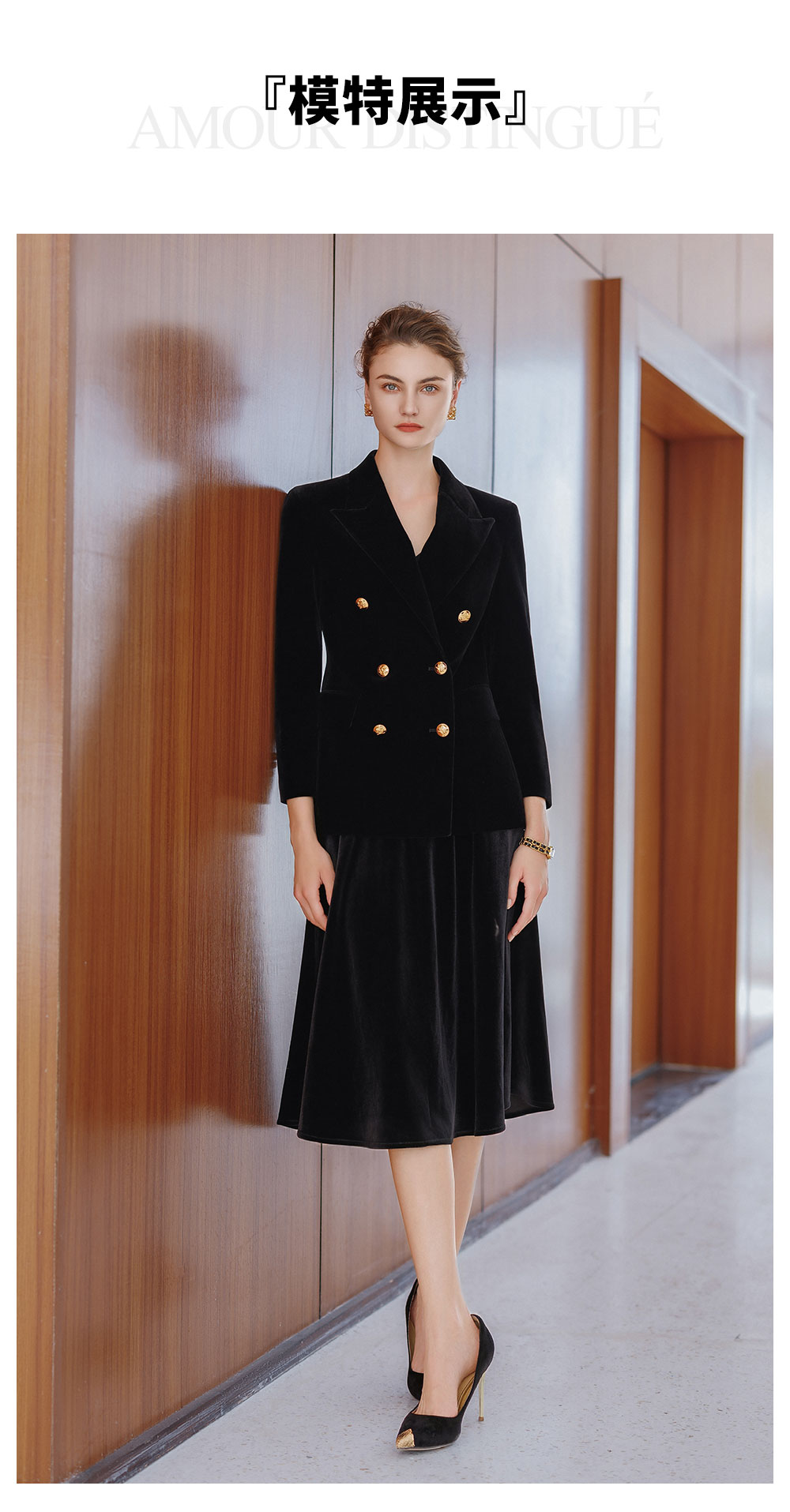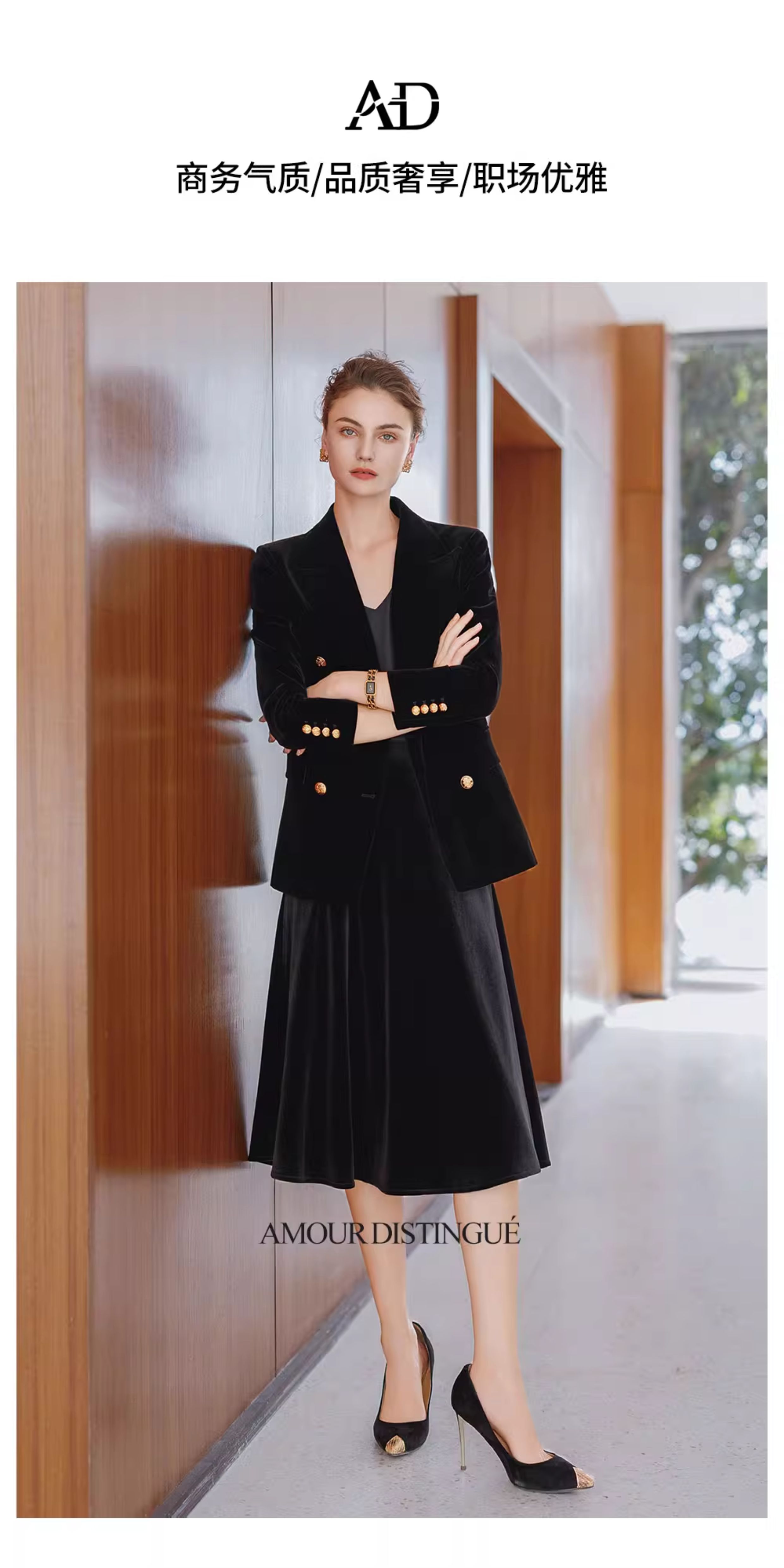AD法式双排扣西装外套女2025新款秋冬高级感丝绒伞裙套装中长款