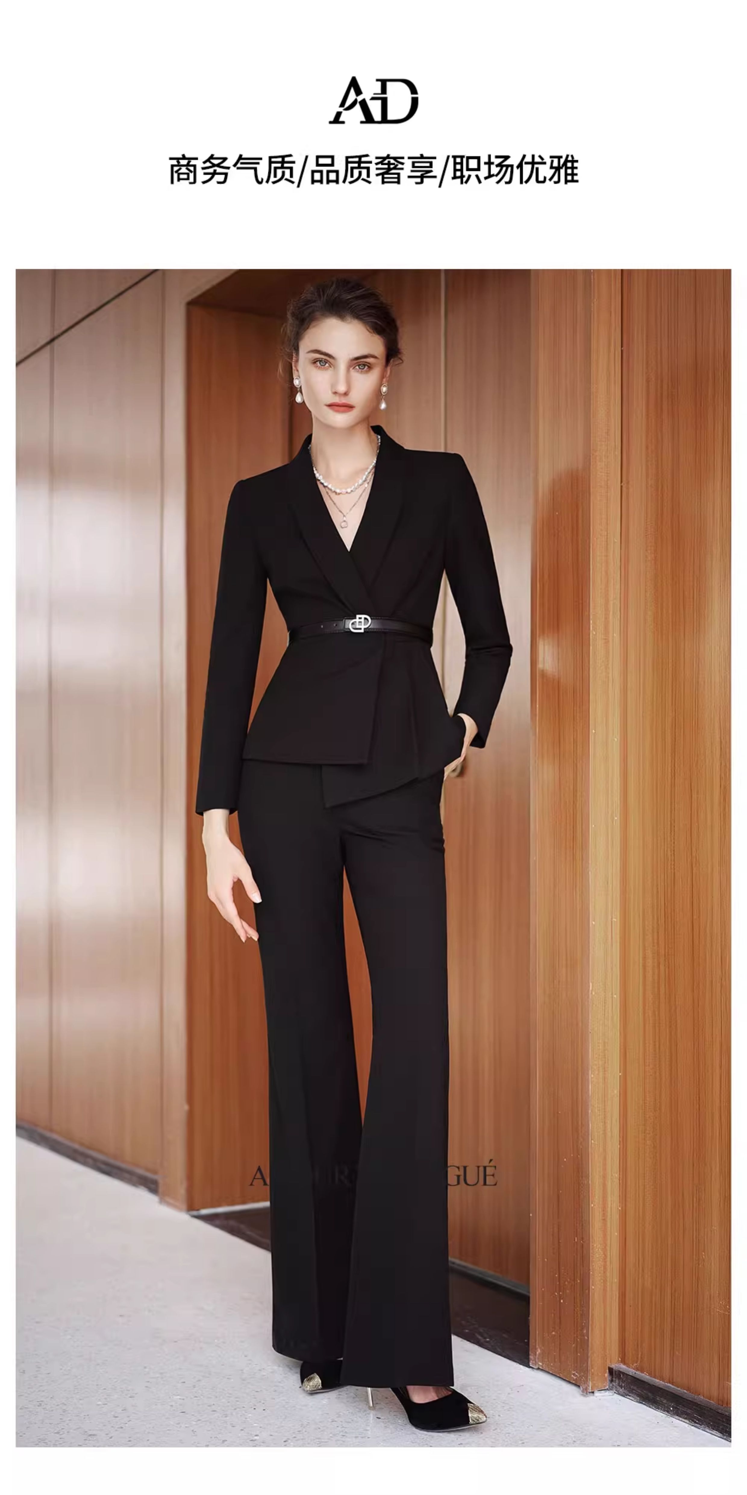 AD黑色职业装套装气质显瘦高腰阔腿裤正装2025新款秋季西装两件套