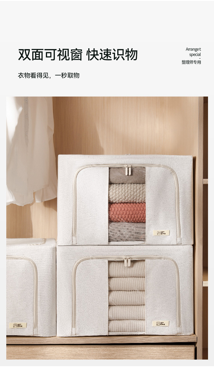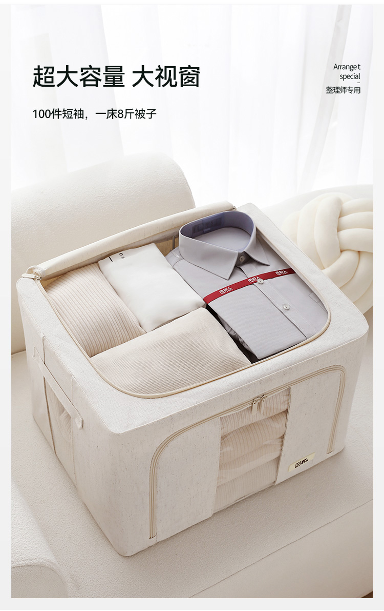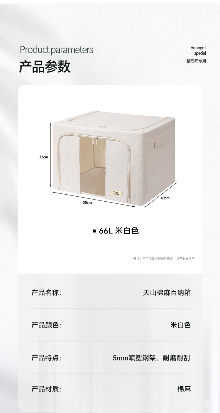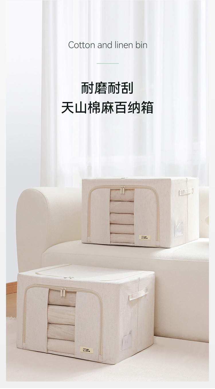 天山棉麻收纳箱日式加厚衣物66升环保收纳盒百纳箱整理师专用