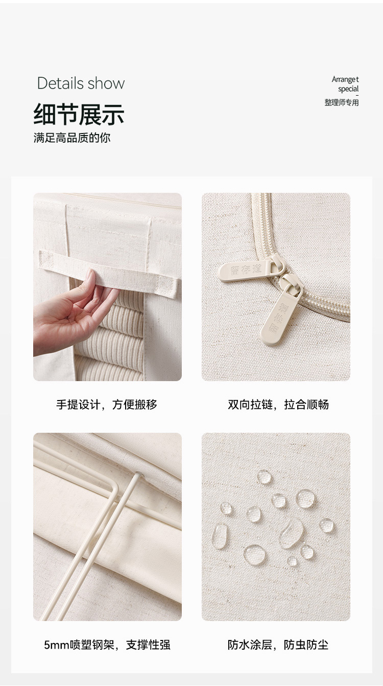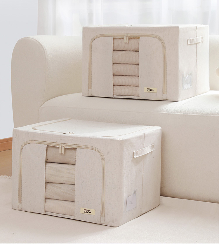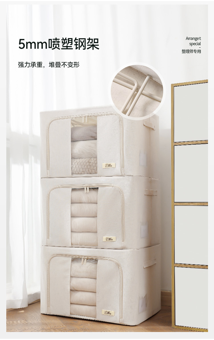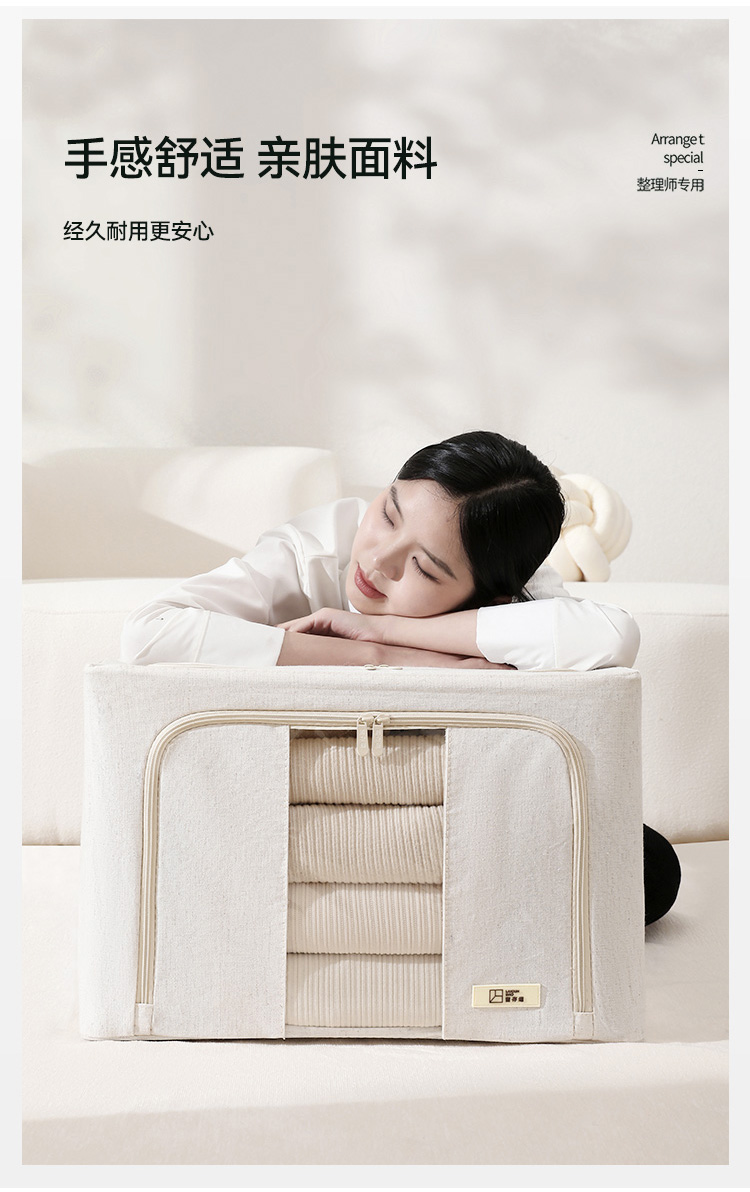 天山棉麻收纳箱日式加厚衣物66升环保收纳盒百纳箱整理师专用
