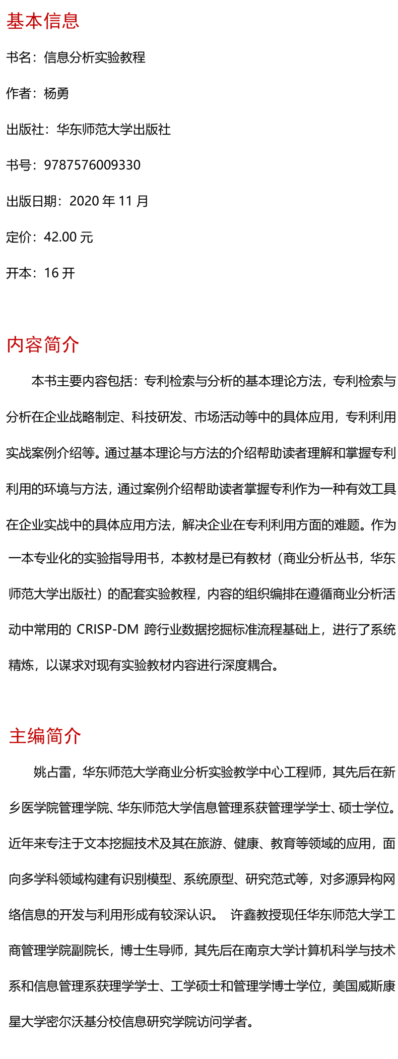 信息分析实验教程 商业分析 实验指导用书 正版 华东师范大学出版社