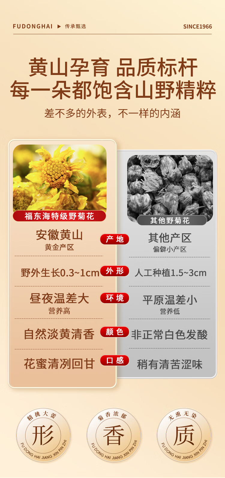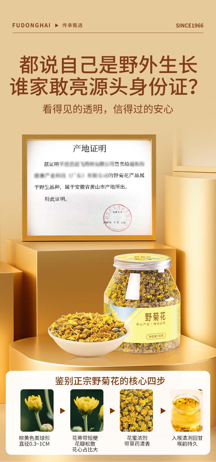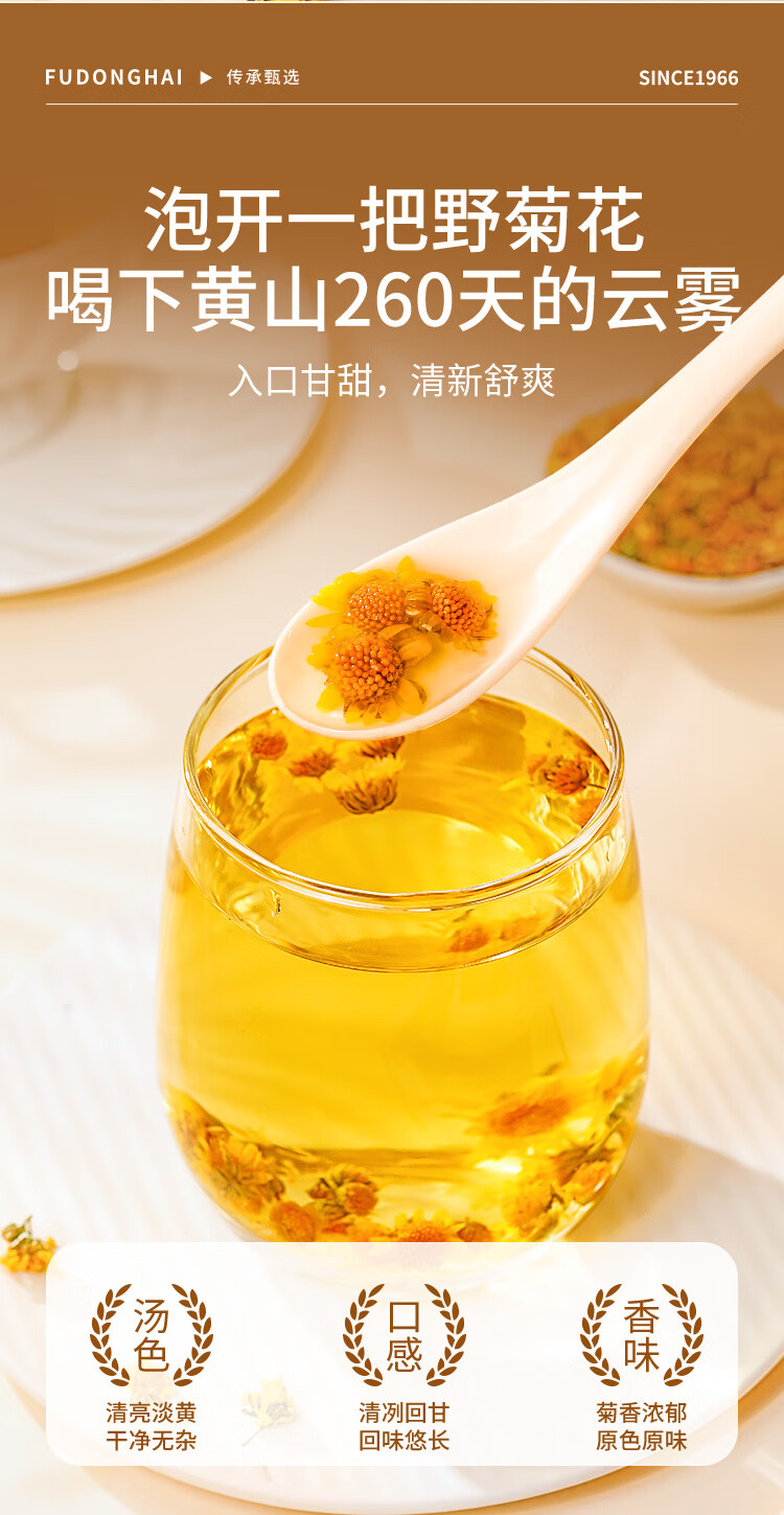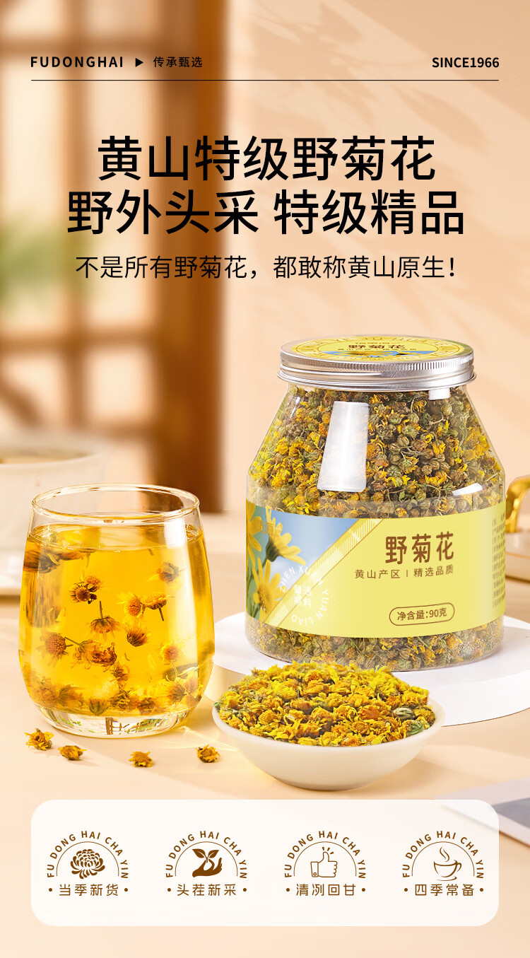 福东海 特级野菊花【黄山特级】搭中药材胎菊菊花护茶肝去草火泡水泡茶