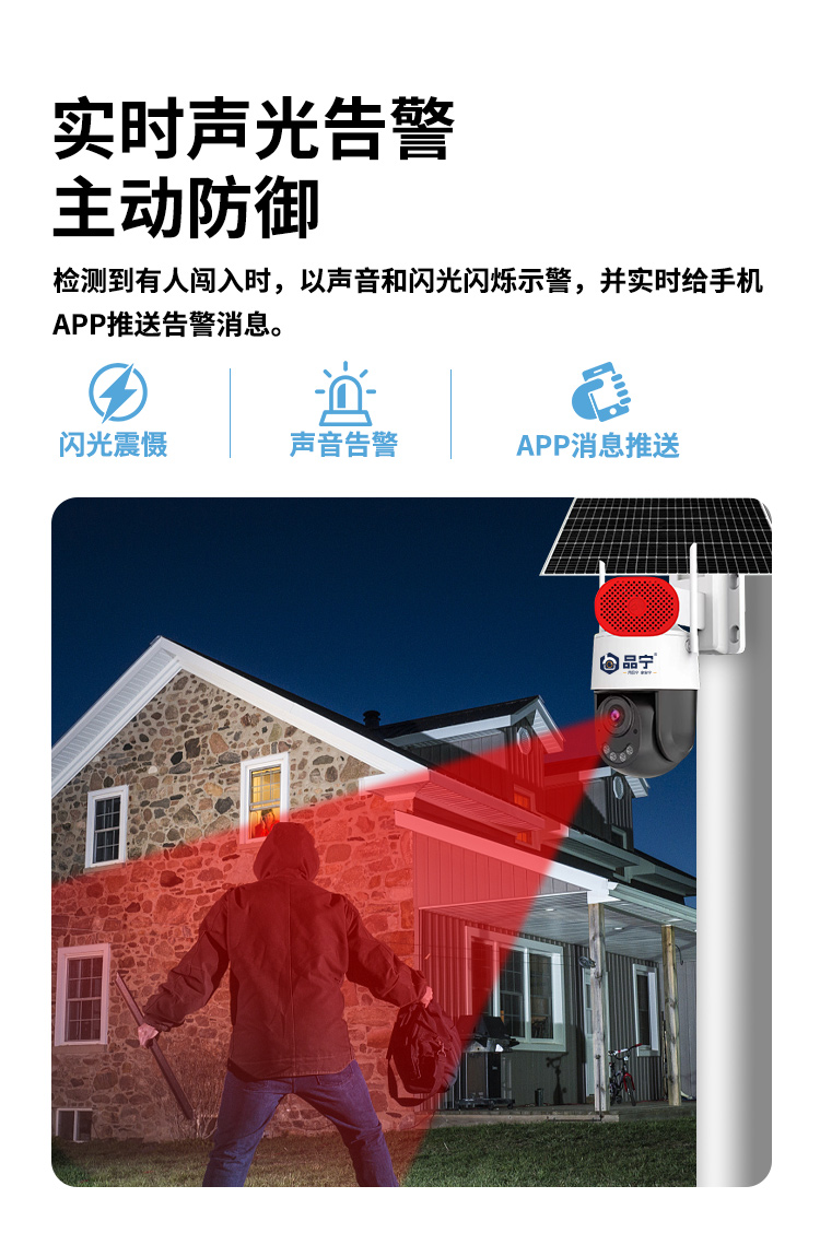 品宁星光六号太阳能臻全彩超低功耗人形侦测报警