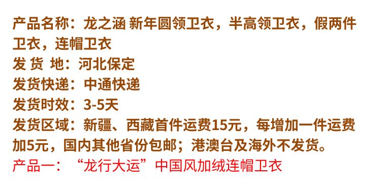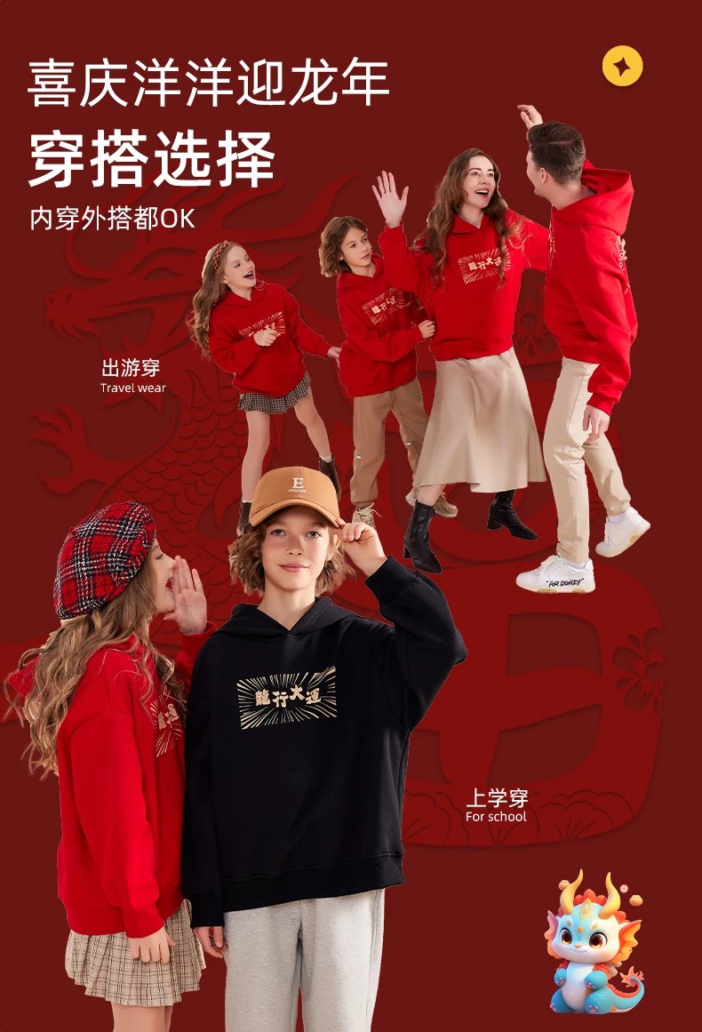 【爆款新年战袍】加绒加厚 一体绒“龙行大运”中国风加绒连帽卫衣&“游龙惊云”假两件加绒卫衣&“小青龙”亲子加绒卫裤