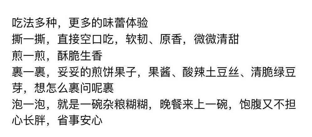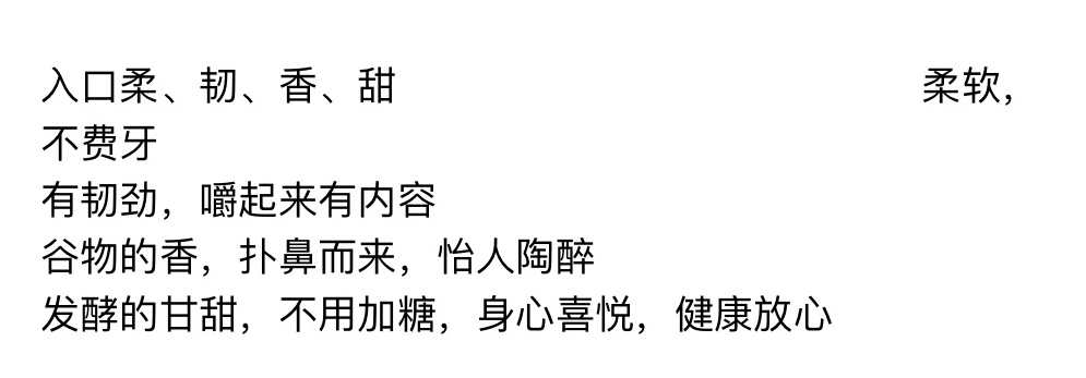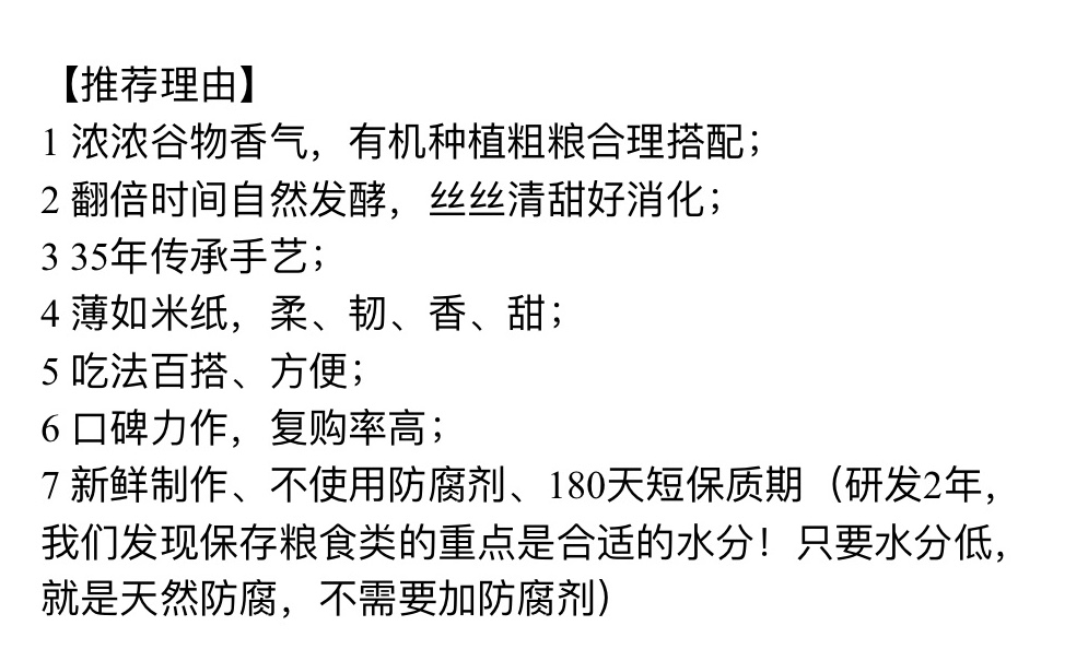浓浓谷物香气、自然发酵,薄如米纸,丝丝清甜,软韧可口
