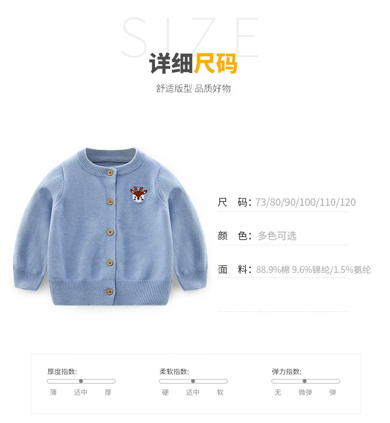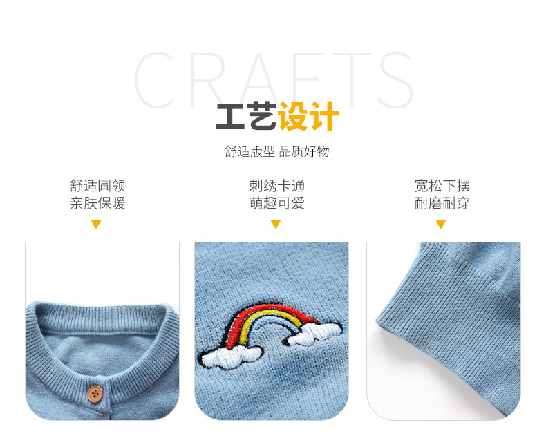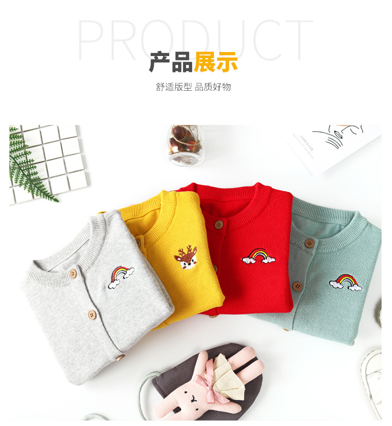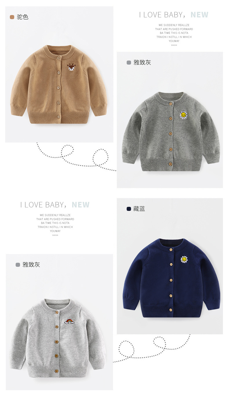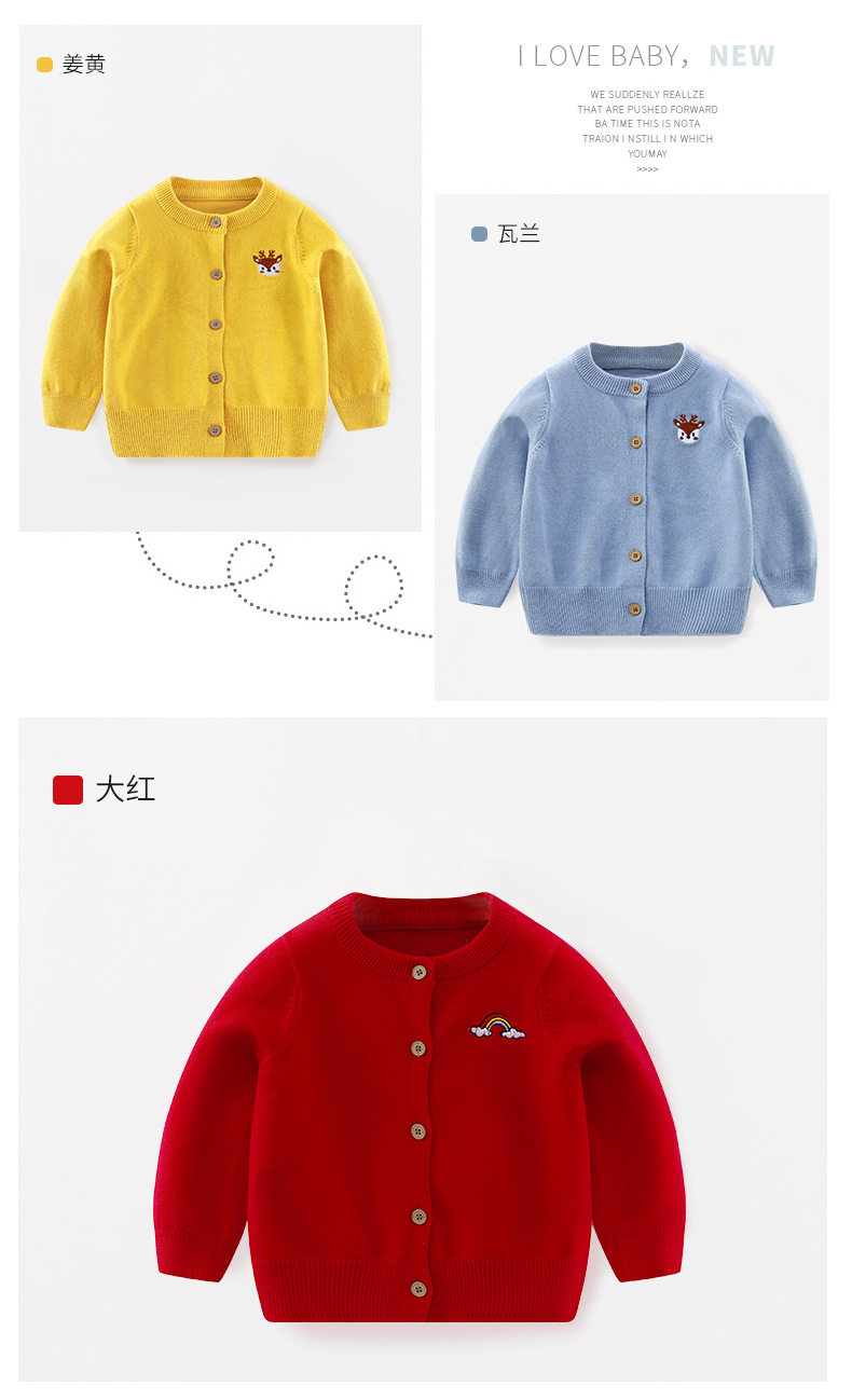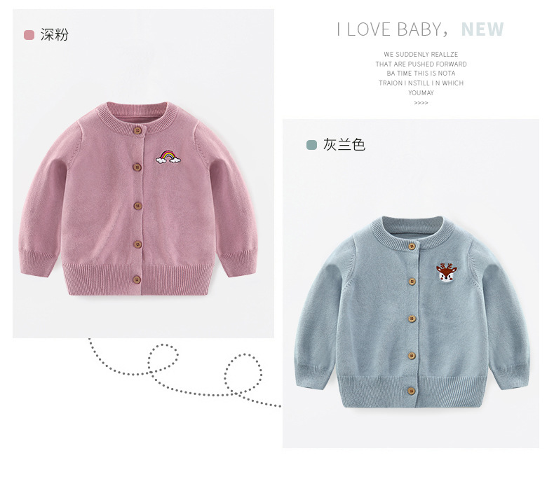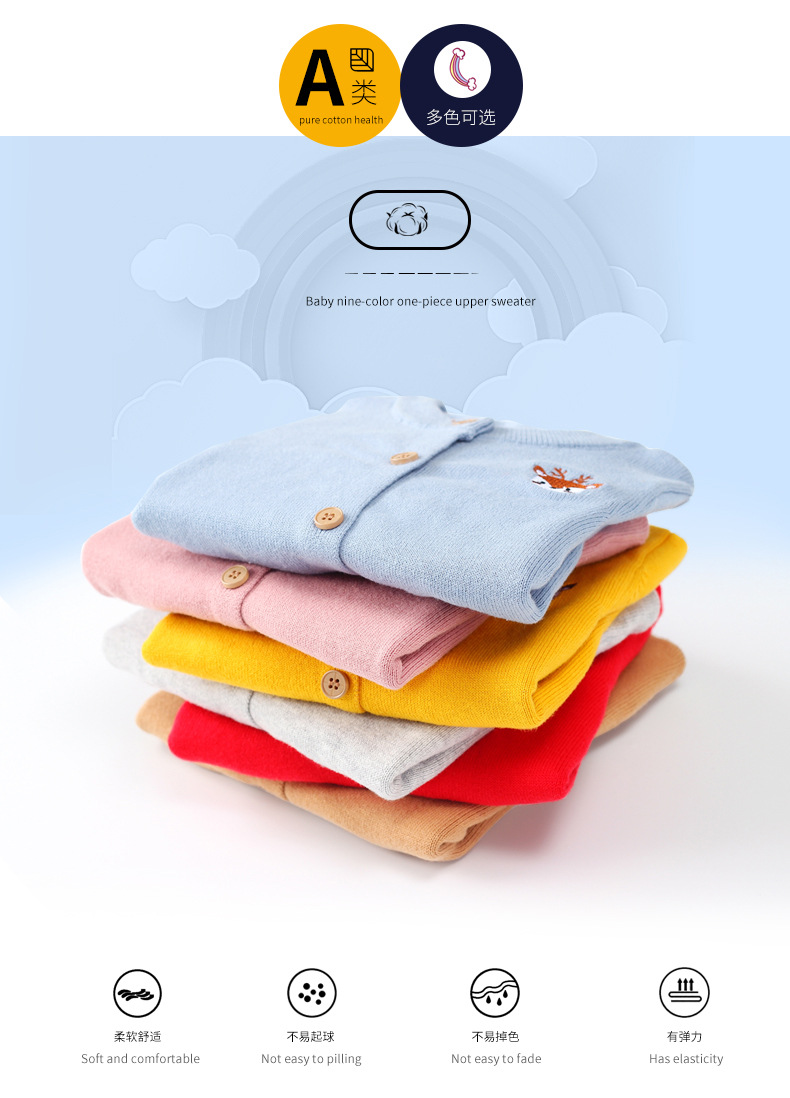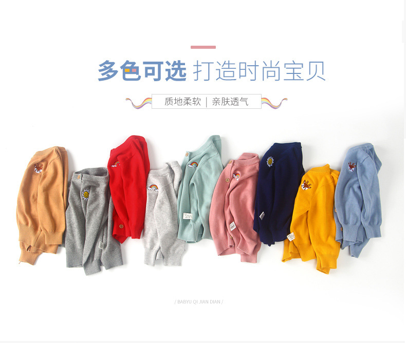 巴布雨柔软ins风简约儿童针织毛衣外套开衫秋纯色A类婴儿毛衣外套