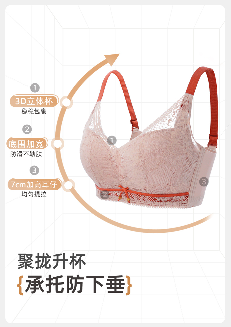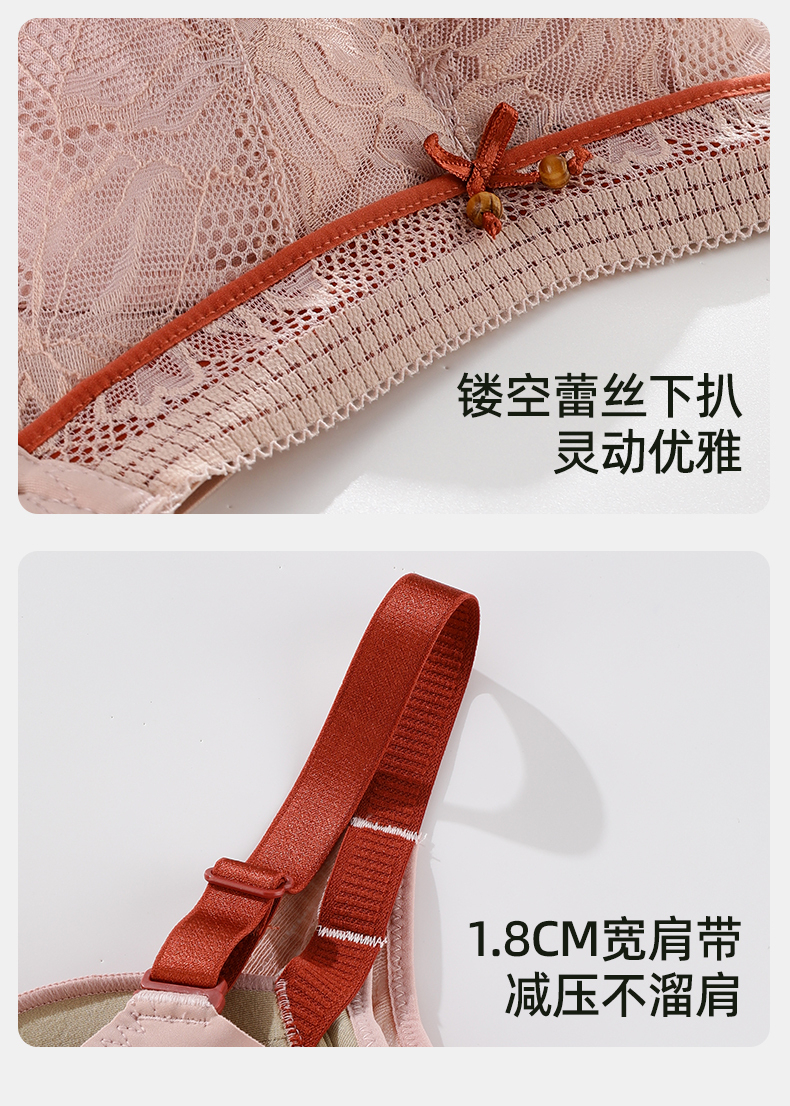 雅黛俪女士文胸甜美性感蕾丝聚拢显大内衣U型美背胸罩