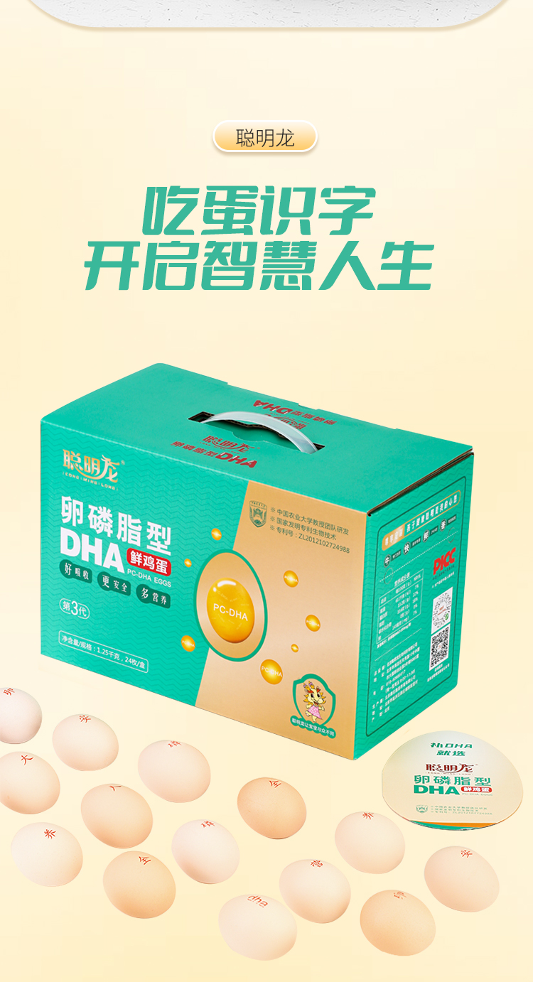 聪明龙 卵磷脂型DHA鲜鸡蛋,新鲜 好吃不腥 吸收好
