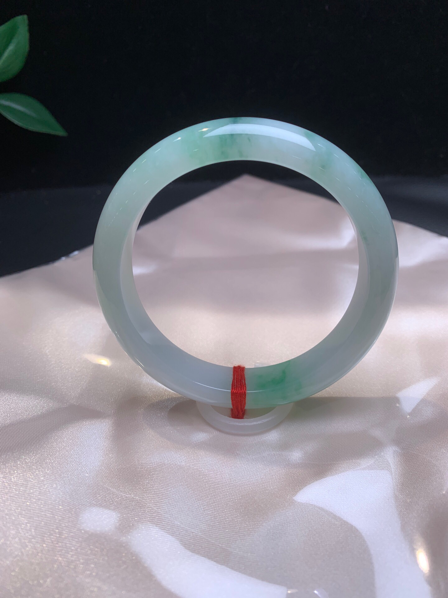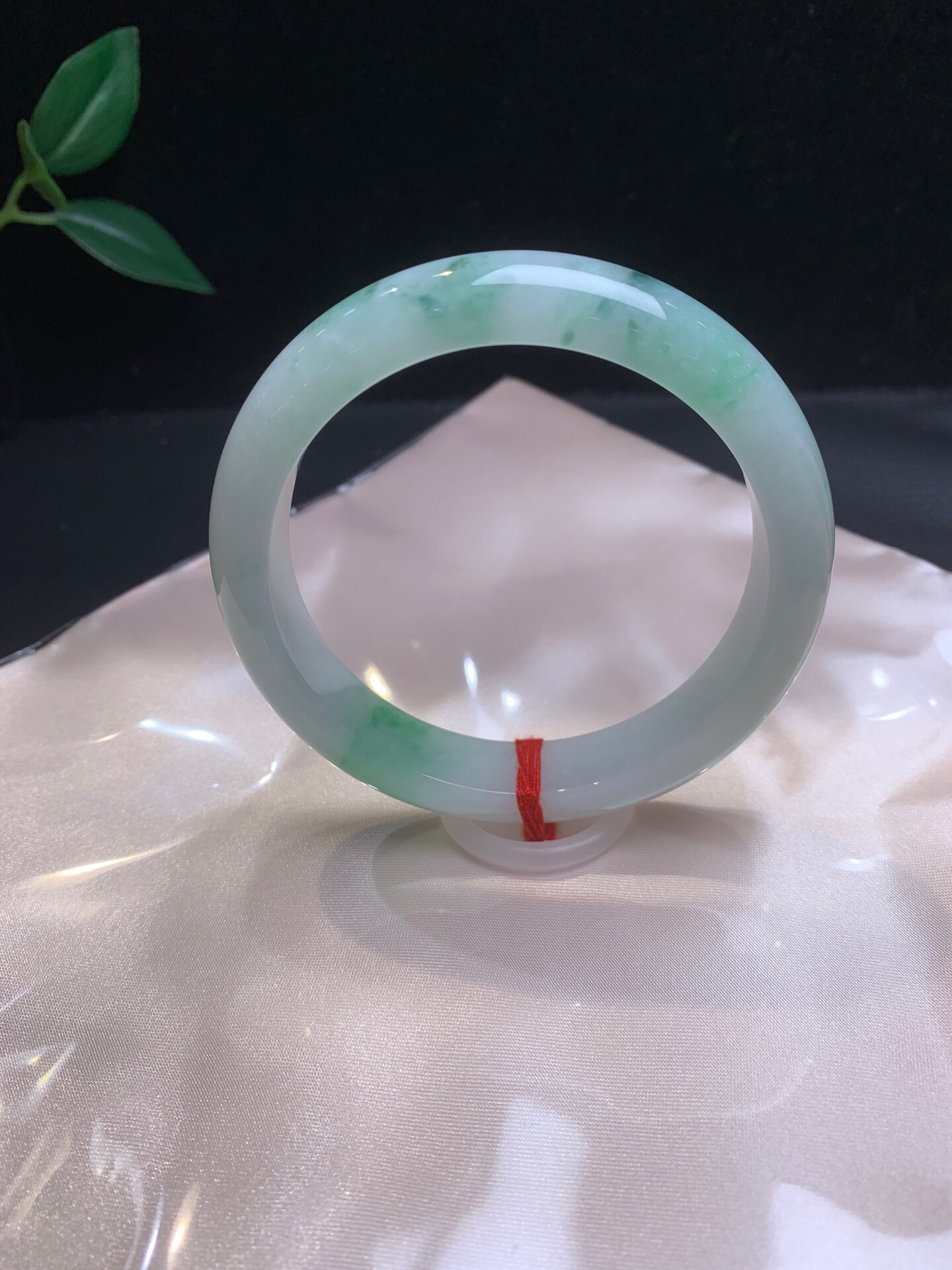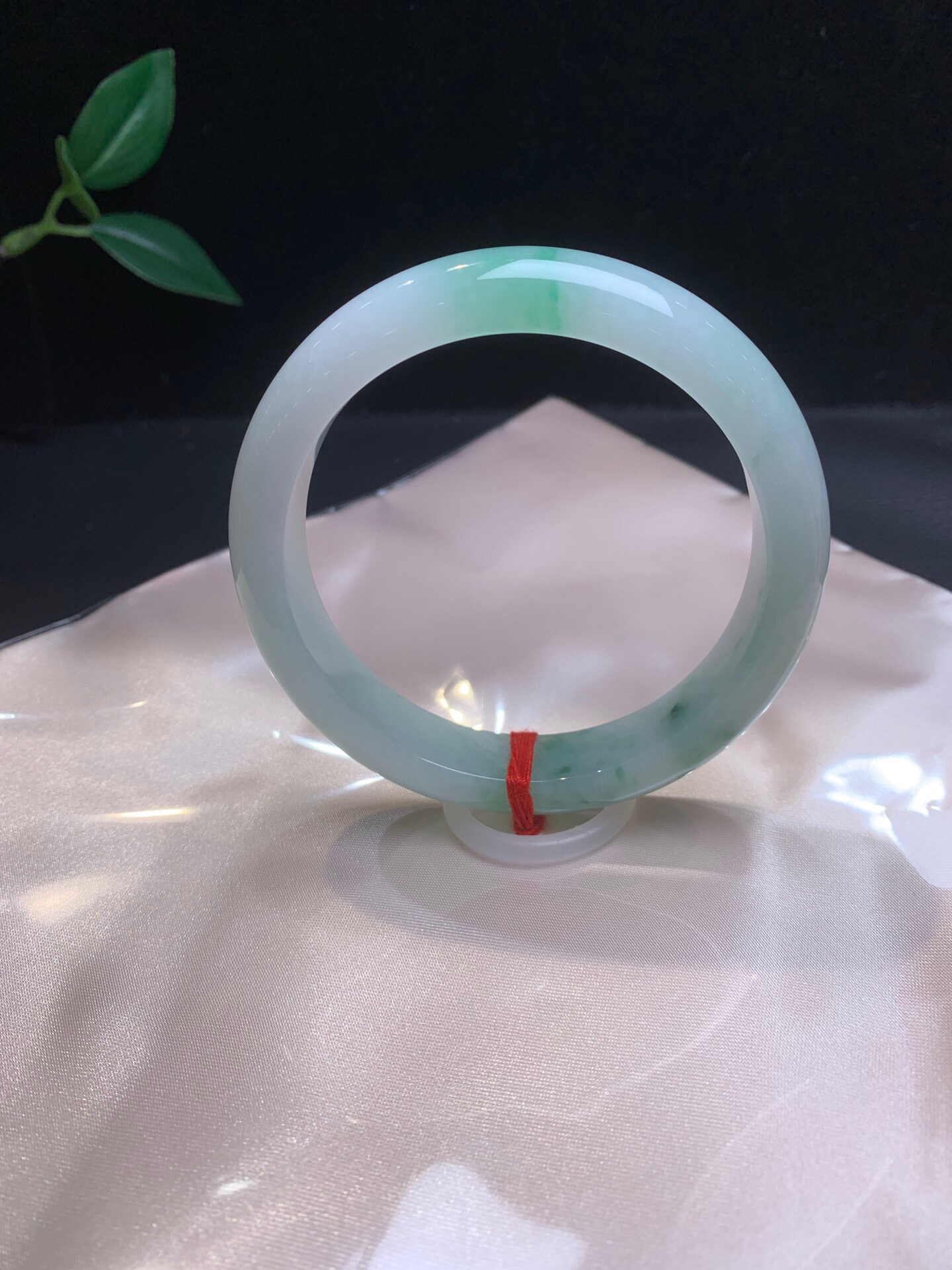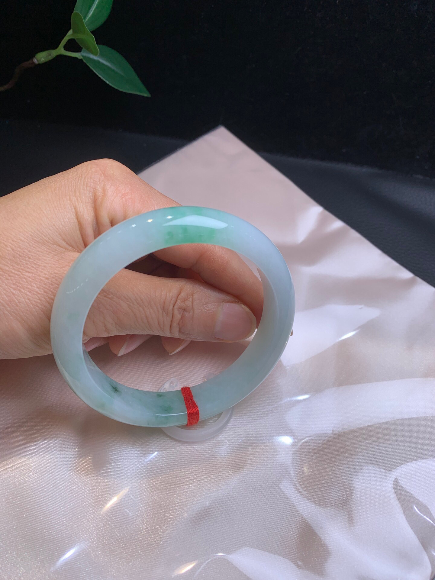 620097,58.7飘绿正圈手镯,12.5-8.2mm,干净清新的绿底,整体细腻清爽,干净完美 特别秀气,超值价💰28600 #优石客珠宝#香玉荟萃