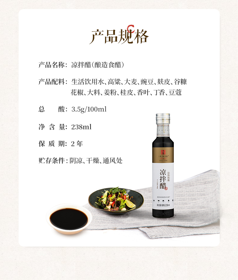 【美和居—国家非遗】凉拌醋专用山西老陈醋 手工家用食醋238ml