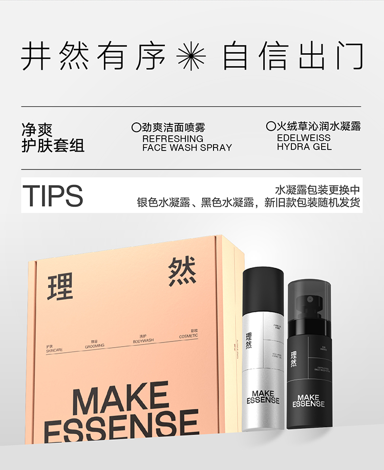 理然×冈本联名 男士护肤洁面套装 精华洗面奶爽肤补水面霜控油洁面保湿