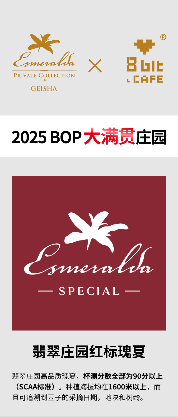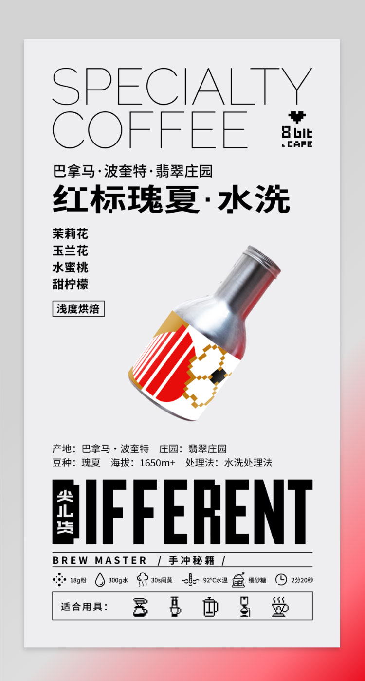 捌比特 巴拿马·波奎特 翡翠庄园 红标瑰夏 水洗 浅度烘焙 精品咖啡豆/100g
