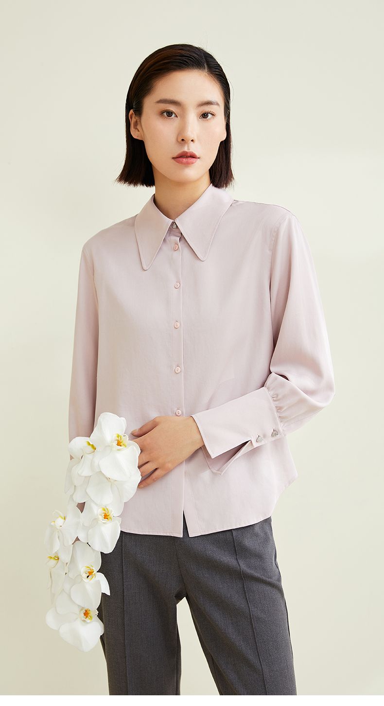 玳莎尖领略宽松式天丝衬衫女优雅气质设计感长袖上衣 CC31313