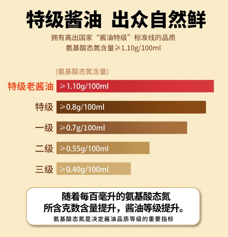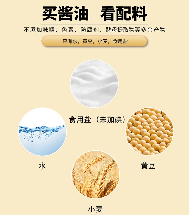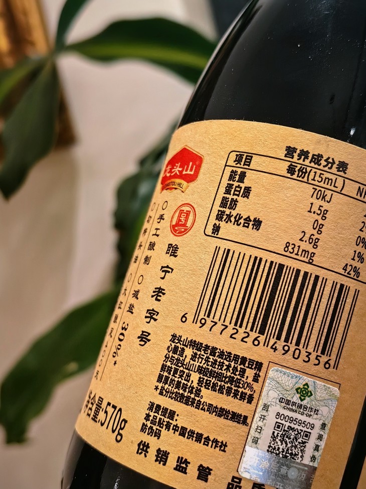 龙头山特级头道老酱油,是初榨头油,传统大缸发酵,足足晒制400天!每一滴酱油都蕴含着阳光与时间的精华,健康无添加,还原最纯粹的老味道。配料仅有水、黄豆、小麦、食用盐,高标准,0添加,让每一滴酱油都回归自然的味道!而且这款老酱油的氨基酸态氮含量高达1.10g/100ml,比国标特级酱油的标准还要高出27%!在零添加的基础上,还科学减盐30%,鲜美!