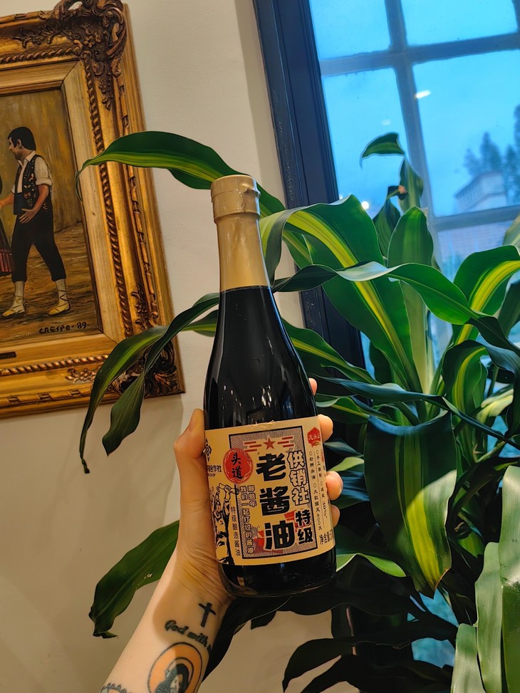 龙头山特级头道老酱油,真的,好复古啊!是中国供销社出的哎,晒足400天特级酿造,而且是减盐30%的版本!一碗热腾腾的白米饭,挖上一勺猪油,淋上一圈酱油,真的一秒唤醒童年回忆,满满的幸福感!