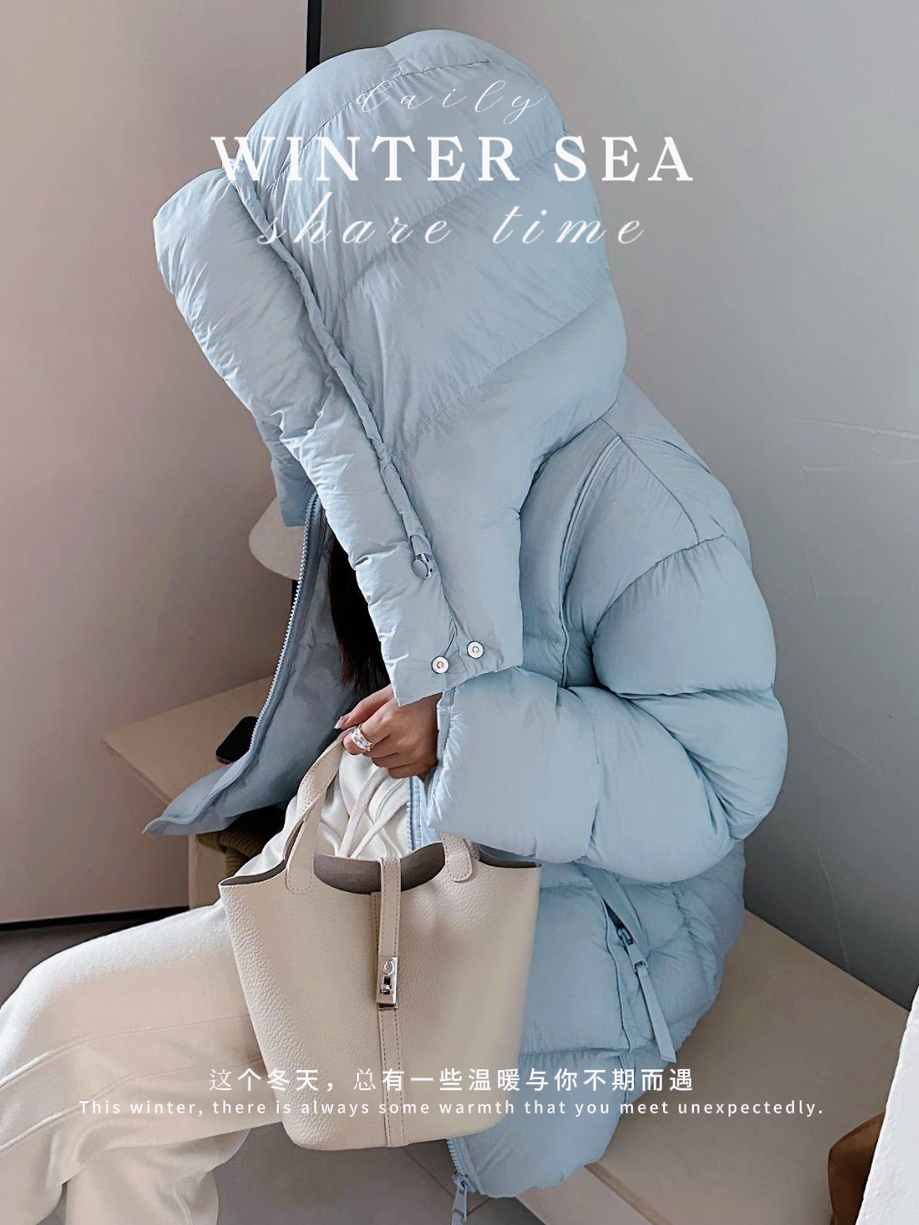 版型设计更是时髦又实穿。特别推荐短款,廓形真的极度友好,包容性强,胖瘦都能hold住,很减龄,遮肉显瘦效果也是拉满,重塑三七比例,秒显腿长,随便一套就很有慵懒氛围感哦!我最喜欢可拆卸的大帽子,帽檐都有充绒,圆圆一圈,防风又保暖,还显脸小;弹力松紧下摆与防风袖,有效抵御寒风,视觉上还收紧比例线条;前后片对称分割线,后面还有立体小花苞造型,背后看也超美!不喜欢短短的,还可以选中长款,保暖更周全哦!