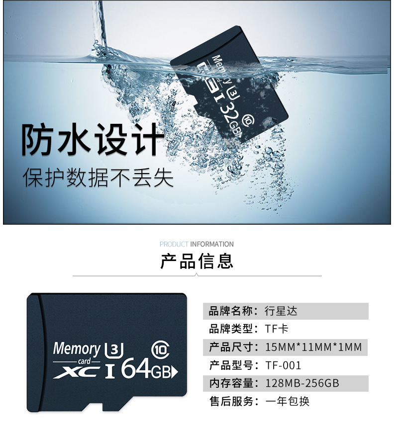 严选【128G固带录像设配通用】超高速TF内存卡 运动相机大疆摄像监控行车记录仪/个