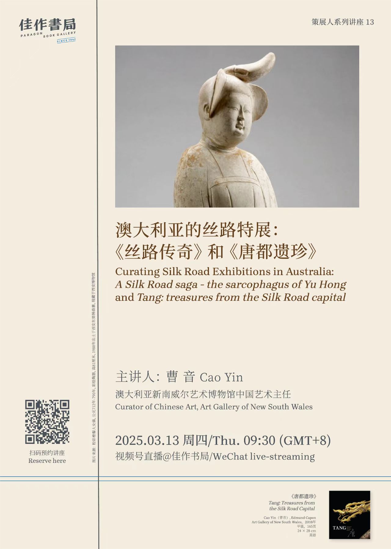 策展人曹音为新南威尔士州立美术馆中国艺术部主任,毕业于北京大学考古系,并为哈佛大学人类学系考古专业的硕士和博士候选人,曾担任北京大学赛克勒考古与艺术博物馆助理馆长和新加坡国立大学李光前博物馆研究员。自从2011年曹音开始担任新洲美术馆策展人之后,就致力于对中国文化的推广。2013年,她联合山西博物院,策划了澳洲首次山西文物展“丝路传奇——虞弘墓石椁展”,同为丝绸之路的主题展,已为本次展览埋下了伏笔。