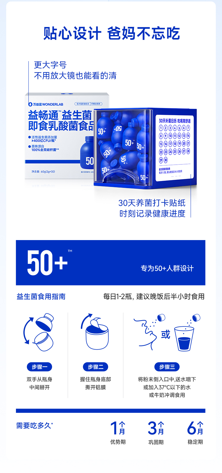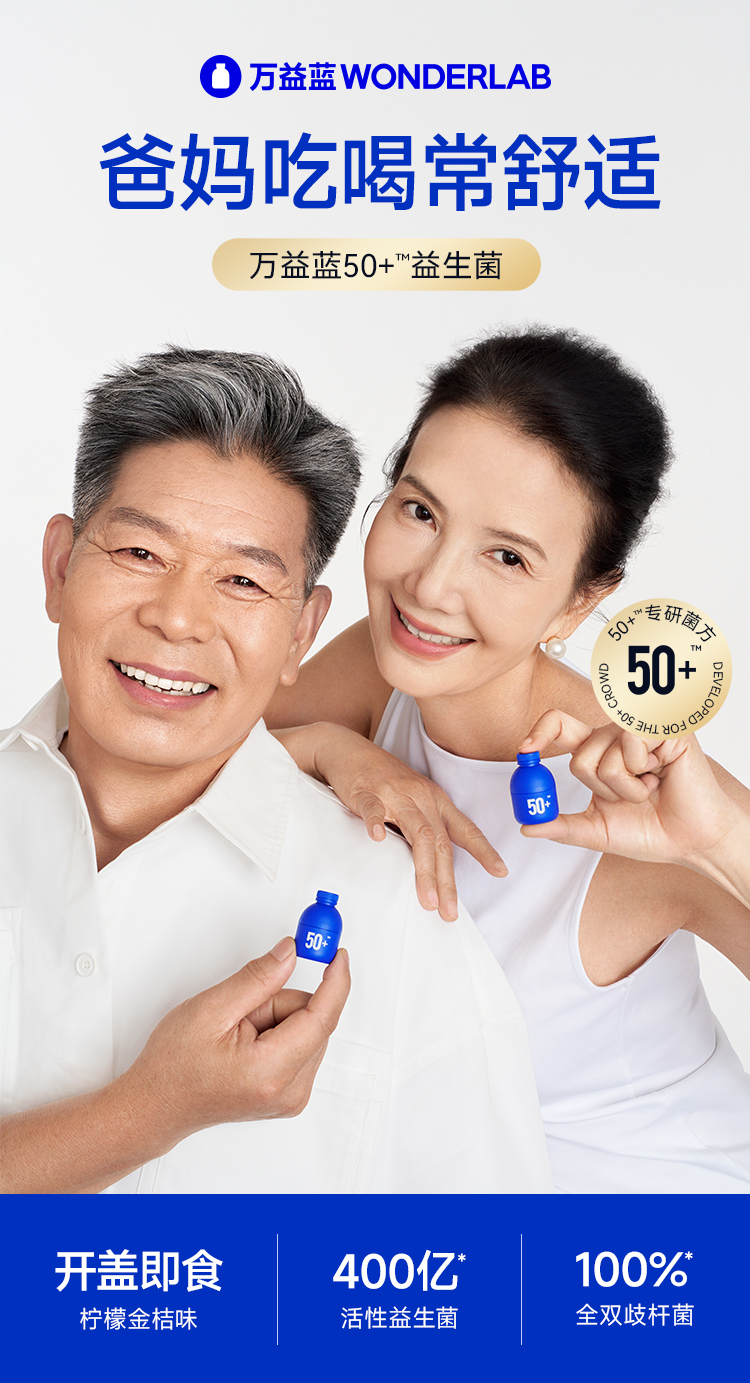 【快抱专属】万益蓝 WonderLab 益畅通银发益生菌 中老年专研400亿高活好菌 爸妈吃喝常舒适